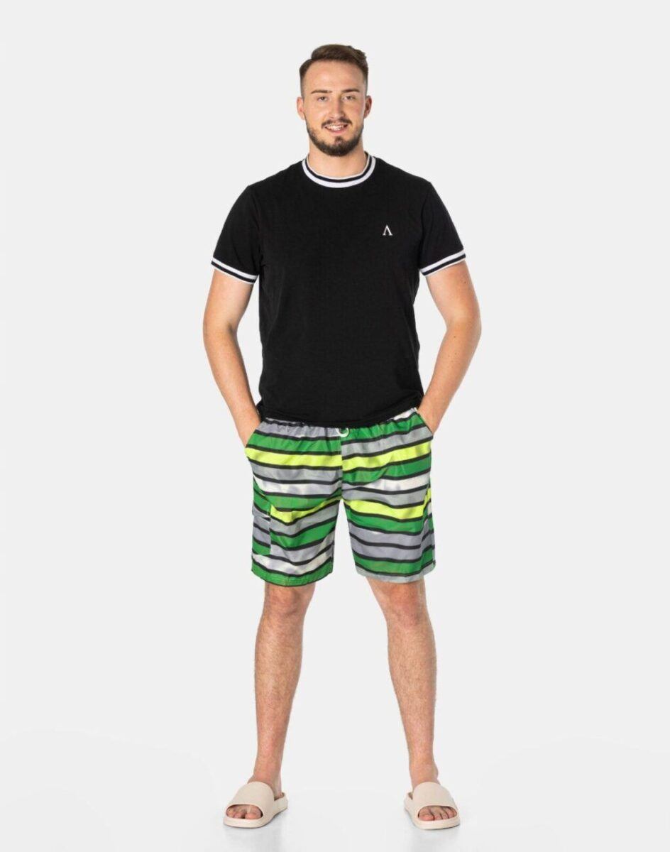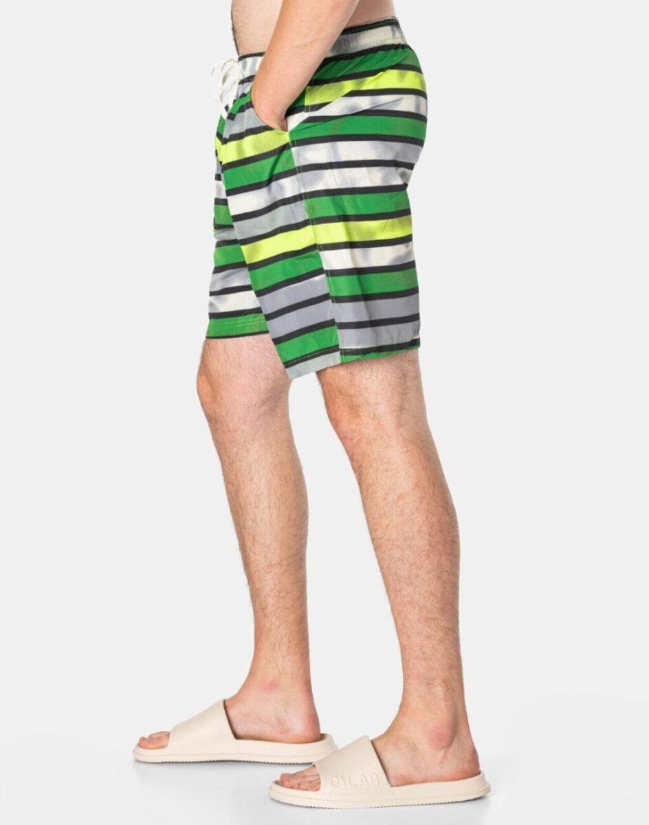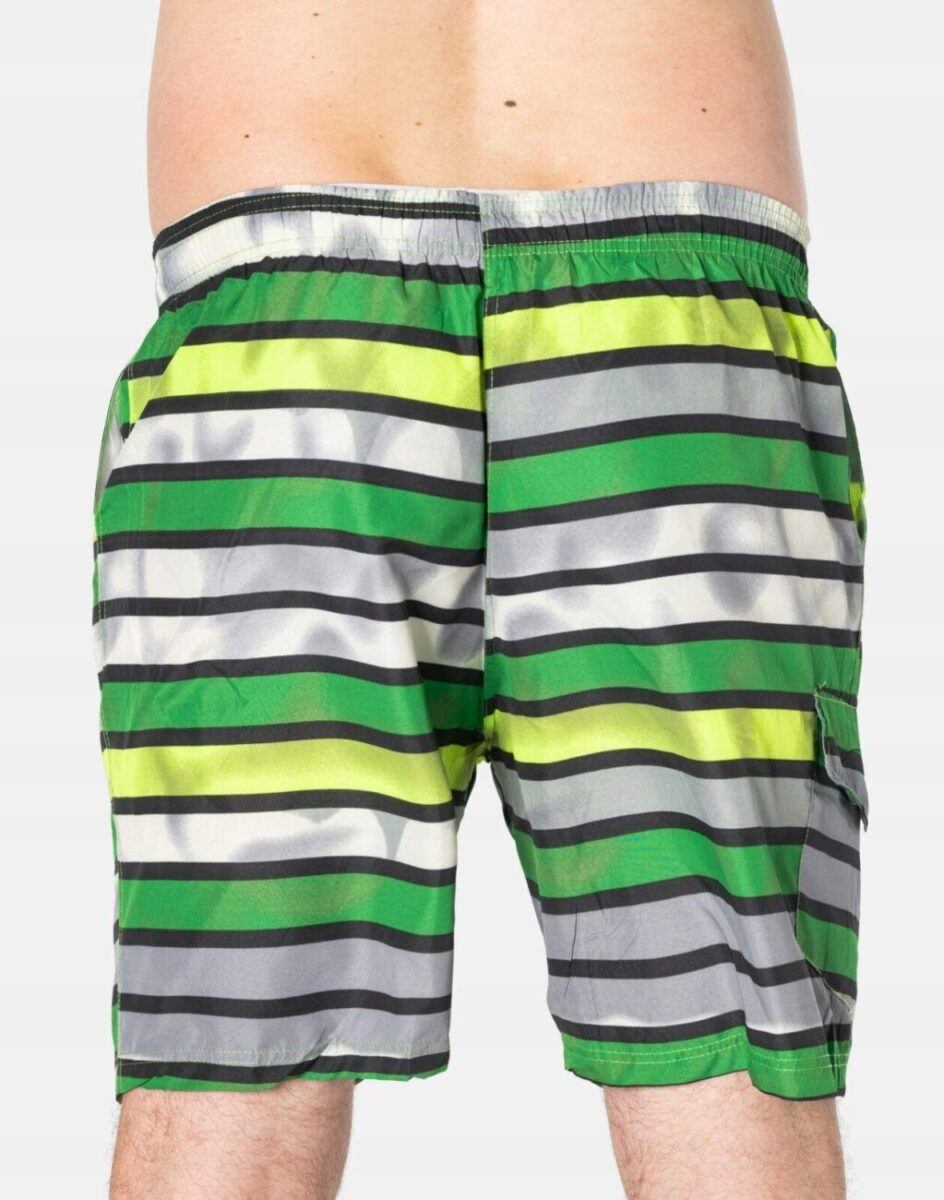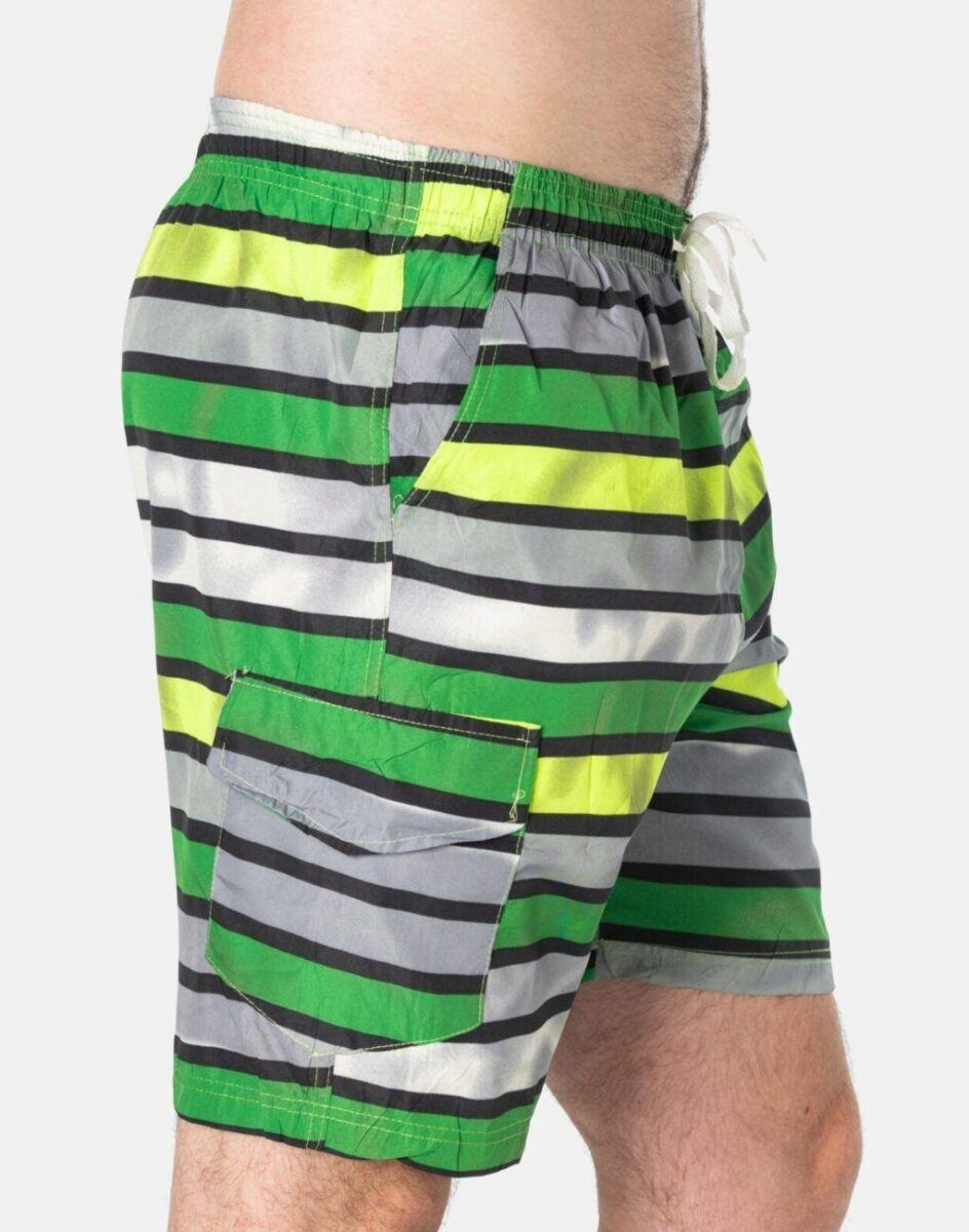 W tym sezonie trwa moda na krótkie sportowe spodenki w paski w żywych, nasyconych kolorach z luźnymi nogawkami typu szorty. Wyjątkowo męskie, lekkie jak piórko, szorty kąpielowe BH 298 idealne na ciepłe i gorące letnie dni. Genialne jako sportowe spodenki kąpielowe będą też pasować do wakacyjnych stylizacji z T-shirtem albo przewiewnym tank topem lub koszulką polo. Wystarczy założyć klapki, t-shirt z nadrukiem, aby bez skrępowania wybrać się do pobliskiej restauracji. Są o wiele bardziej wygodne od klasycznych kąpielówek ponieważ luźne nogawki dają poczucie komfortu, niewymuszonego luzu i wygody, nie opinają ciała i nadają dobre proporcje męskiej sylwetce.