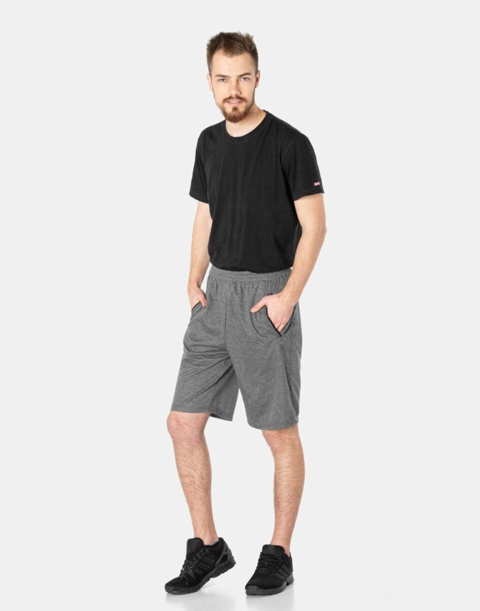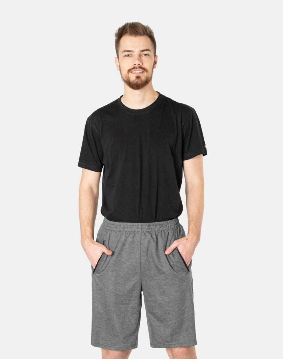 Uszyte z naturalnej, miękkiej, ekologicznej bawełny o gramaturze 240 g/m2 gwarantującej świetną przepuszczalność powietrza, wchłanianie potu i oddychanie skóry. Dodatek poliestru zapewnia pełną swobodę ruchów oraz stabilności rozmiarów i koloru po wielokrotnym praniu. Ergonomiczny krój spodenek nie ogranicza swobody ruchów, a właściwe dla odzieży sportowej proporcje surowcowe i wysokiej jakości dzianina dresowa pozytywnie wpływa na komfort użytkowania zapewniając dobrą cyrkulację powietrza. Idealne na co dzień jako element domowego stroju, jak również na ciepłe i gorące dni wiosny i lata. Świetne sprawdzają się na siłowni, wakacyjnych wyjazdach, podczas uprawiania różnych dyscyplin sportowych i rekreacji.