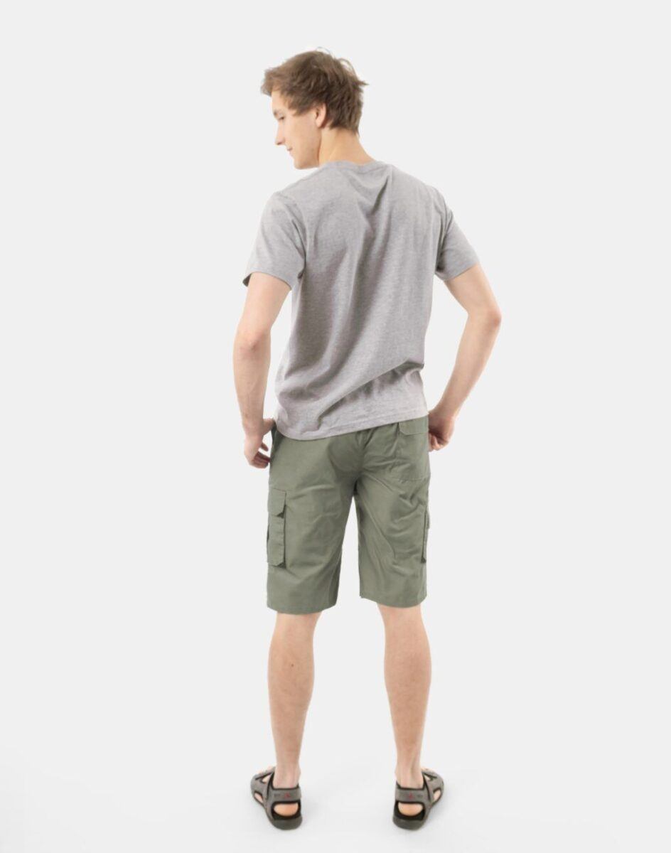 Spodenki zapinane są na zamek błyskawiczny i guzik. W pasie mają wszytą szeroką gumę/ścigacz i posiadają aż 5 kieszeni. Z przodu dwie klasyczne wpuszczane kieszenie na dłonie. Z tyłu pojedyncza kieszeń naszywana kryta patką zapinaną na rzep. Na prawym udzie kieszeń typu Cargo zasuwana na zamek z naszytą ozdobną patką. Na lewym udzie duża kieszeń typu Cargo, kryta patką zapinaną na rzep. W pasie szlufki umożliwiające stylizację z paskiem. Najbardziej podatne na uszkodzenia miejsca wzmocnione są dodatkowymi przeszyciami. Odpowiedni krój spodenek nie ogranicza swobody ruchów a niewielka gramatura pozytywnie wpływa na komfort użytkowania zapewniając dobrą cyrkulację powietrza.