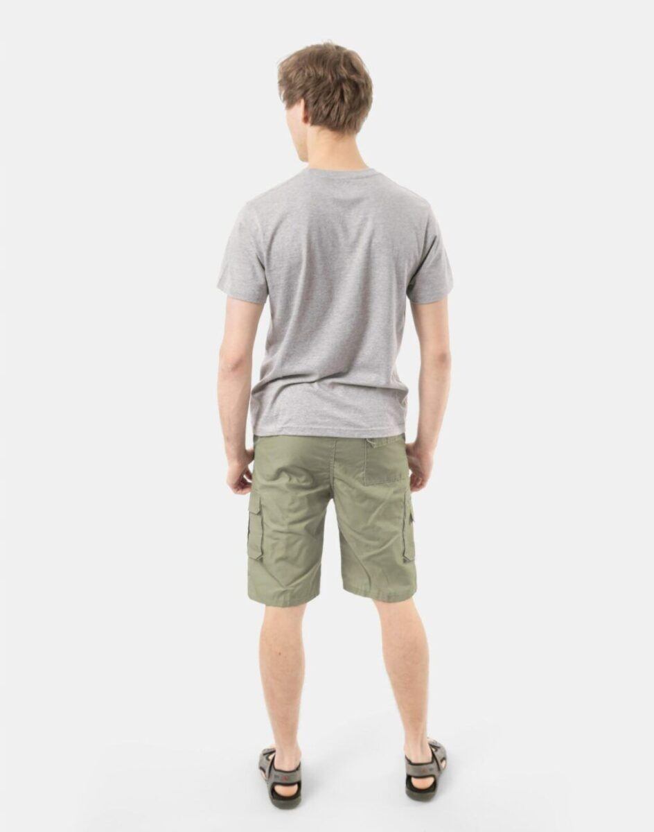 Spodenki zapinane są na zamek błyskawiczny i guzik. W pasie mają wszytą szeroką gumę/ścigacz i posiadają aż 5 kieszeni. Z przodu dwie klasyczne wpuszczane kieszenie na dłonie. Z tyłu pojedyncza kieszeń naszywana kryta patką zapinaną na rzep. Na prawym udzie kieszeń typu Cargo zasuwana na zamek z naszytą ozdobną patką. Na lewym udzie duża kieszeń typu Cargo, kryta patką zapinaną na rzep. W pasie szlufki umożliwiające stylizację z paskiem. Najbardziej podatne na uszkodzenia miejsca wzmocnione są dodatkowymi przeszyciami. Odpowiedni krój spodenek nie ogranicza swobody ruchów a niewielka gramatura pozytywnie wpływa na komfort użytkowania zapewniając dobrą cyrkulację powietrza.