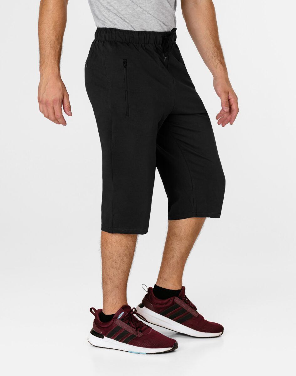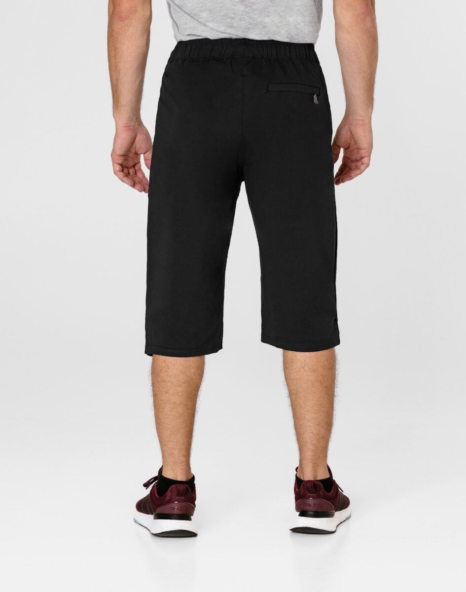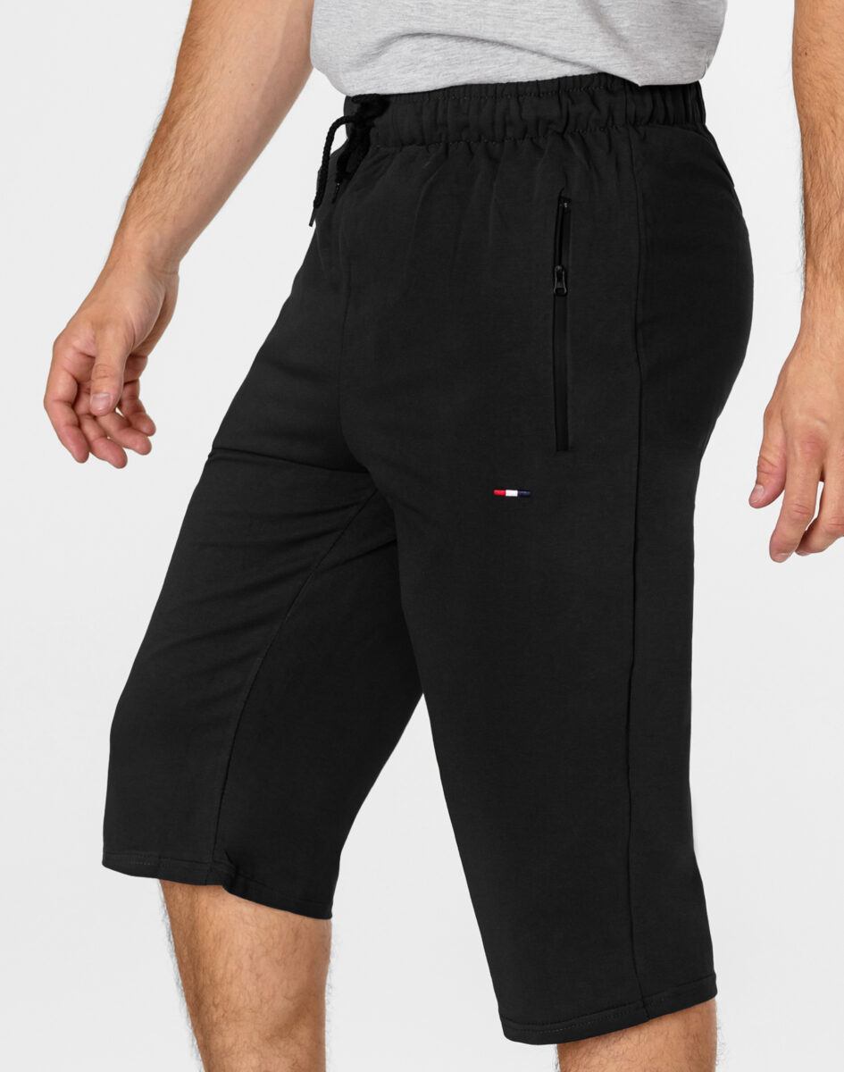 Krótkie sportowe spodenki męskie 3300#, to komfortowo skrojony model z luźną nogawką za kolano. Z założenia wyróżniają się dużą wygodą, a dopasowanie w pasie zapewnia szeroki elastyczny pas ściągający oraz dodatkowo wpuszczona w pasek taśma regulacyjna z możliwością jej zawiązywania. Na bokach mają dwie wpuszczane kieszenie na dłonie zasuwane na zamki błyskawiczne, z tyłu jedna wpuszczana kieszeń zasuwana na kryty zamek błyskawiczny.