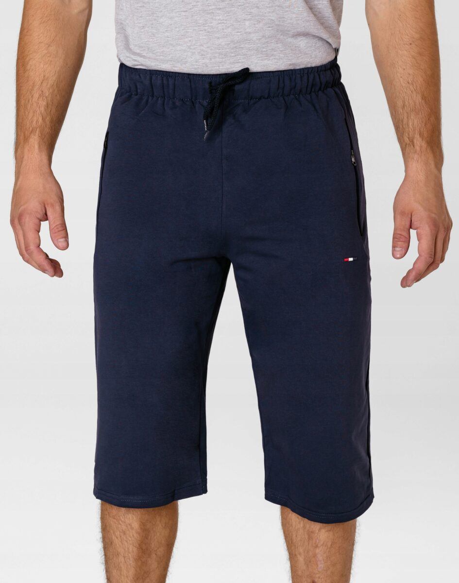 Krótkie sportowe spodenki męskie 3300#, to komfortowo skrojony model z luźną nogawką za kolano. Z założenia wyróżniają się dużą wygodą, a dopasowanie w pasie zapewnia szeroki elastyczny pas ściągający oraz dodatkowo wpuszczona w pasek taśma regulacyjna z możliwością jej zawiązywania. Na bokach mają dwie wpuszczane kieszenie na dłonie zasuwane na zamki błyskawiczne, z tyłu jedna wpuszczana kieszeń zasuwana na kryty zamek błyskawiczny.