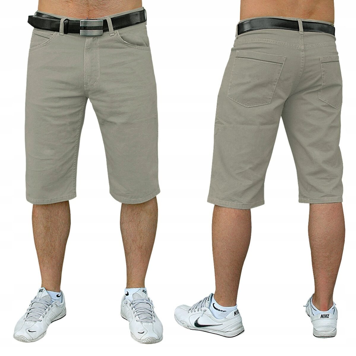 Uszyte z cienkiej tkaniny 100% bawełnianej, o sprawdzonym przez wielu klientów kroju, lekkie i wygodne idealne na co dzień jako element casualowego stroju czyniąc go lekkim i dostosowanym do wysokich temperatur. Naturalna bawełna gwarantuje świetną przepuszczalność powietrza, wchłanianie potu i oddychanie skóry. Zapinane na kryty zamek błyskawiczny i guzik. Z przodu klasyczne wpuszczane kieszenie zaokrąglone oraz bilonówka, z tyłu kieszenie nakładane. Najbardziej podatne na uszkodzenia miejsca wzmocnione są dodatkowymi przeszyciami oraz nitami. W pasie szlufki umożliwiające stylizacje z paskiem. Długość "w kolano" według najnowszych modowych trendów przewidzianych na ten sezon.