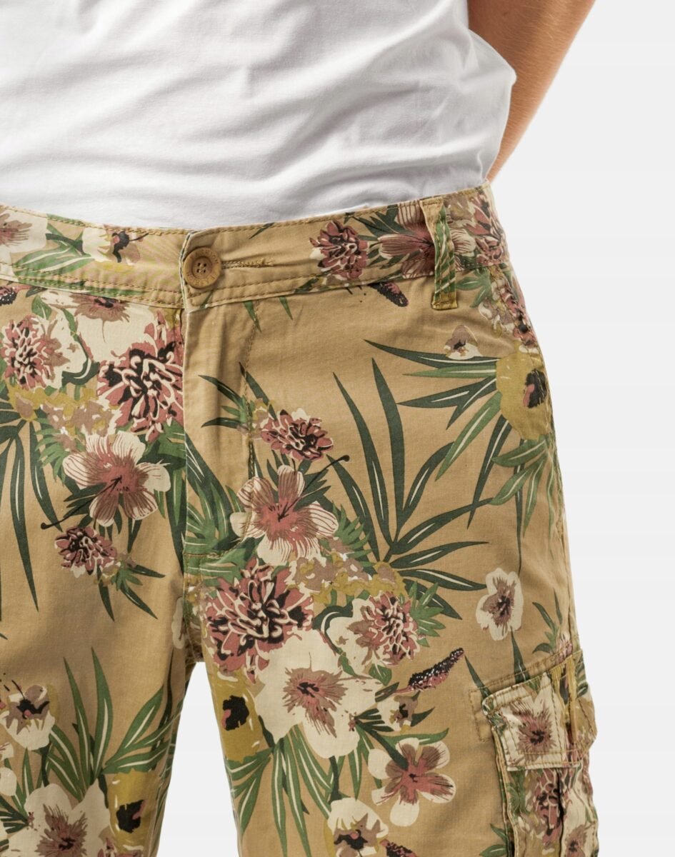 To idealne rozwiązanie na ciepłe i upalne dni a także ulubiony fason prawdziwych mężczyzn, bo są wyjątkowo wygodne a dzięki zastosowaniu wielu kieszeni także bardzo praktyczne. Uszyte z cienkiej tkaniny bawełnianej z niewielkim dodatkiem spandexu gwarantują świetną przepuszczalność powietrza, wchłanianie potu i oddychanie skóry. Dzięki dodatkowi 3% lycry (spandex) spodenki są bardziej elastyczne i wyjątkowo wygodne w użytkowaniu. Pozwalają na pełną swobodę ruchów, co daje komfort przy siadaniu i zapewnia ogromny komfort noszenia. Spodenki zapinane są na zamek błyskawiczny i guzik i posiadają aż 7 praktycznych kieszeni. Z przodu dwie klasyczne wpuszczane kieszenie na dłonie oraz mniejszą kieszonkę tzw. bilonówkę. Z tyłu dwie kieszenie wpuszczane. Na udach dwie kieszenie kryte patką zapinaną na guziki. W pasie szlufki umożliwiające stylizację z paskiem. Najbardziej podatne na uszkodzenia miejsca wzmocnione są dodatkowymi przeszyciami. Odpowiedni krój spodenek i delikatnie elastyczna tkanina nie ogranicza swobody ruchów a niewielka gramatura pozytywnie wpływa na komfort użytkowania zapewniając dobrą cyrkulację powietrza.