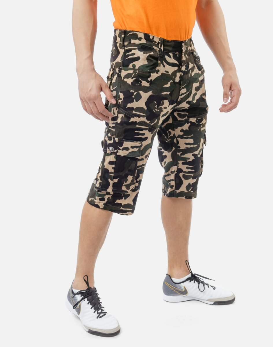Wakacje to czas ubrań, które łączą w sobie atrakcyjny modny wygląd i wygodę – takich jak krótkie spodenki typu bojówki w militarne wzory moro.