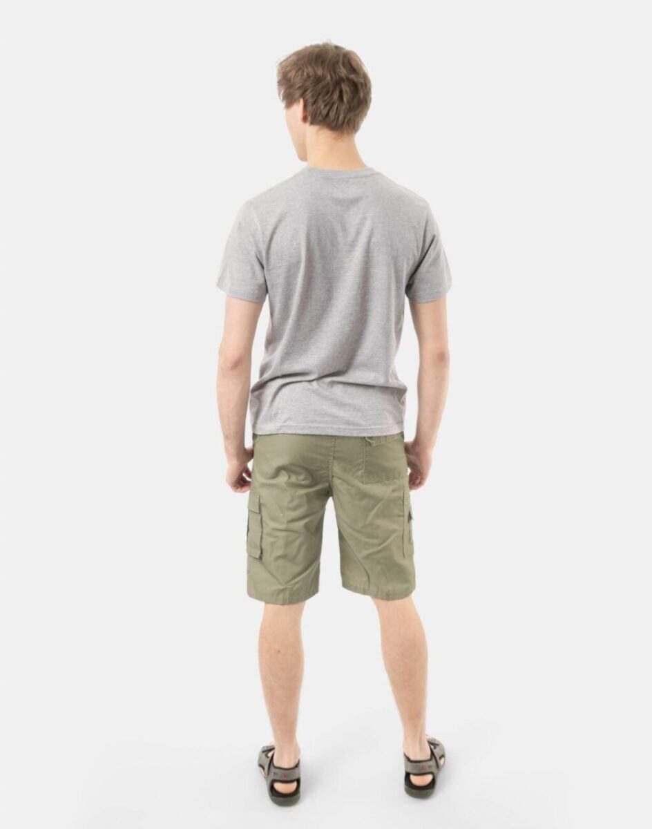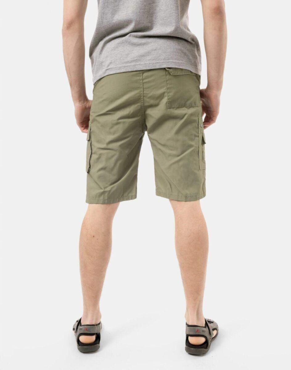 Spodenki zapinane są na zamek błyskawiczny i guzik. W pasie mają wszytą szeroką gumę/ścigacz i posiadają aż 6 kieszeni. Z przodu dwie klasyczne wpuszczane kieszenie na dłonie. Z tyłu pojedyncza kieszeń naszywana kryta patką zapinaną na rzep. Na prawym udzie dwie kieszenie, większa zasuwana na zamek, mniejsza kryta patką zapinaną na rzep. Na lewym udzie duża kieszeń typu Cargo również kryta patką zapinaną na rzep. W pasie szlufki umożliwiające stylizację z paskiem. Najbardziej podatne na uszkodzenia miejsca wzmocnione są dodatkowymi przeszyciami. Odpowiedni krój spodenek nie ogranicza swobody ruchów a niewielka gramatura pozytywnie wpływa na komfort użytkowania zapewniając dobrą cyrkulację powietrza.