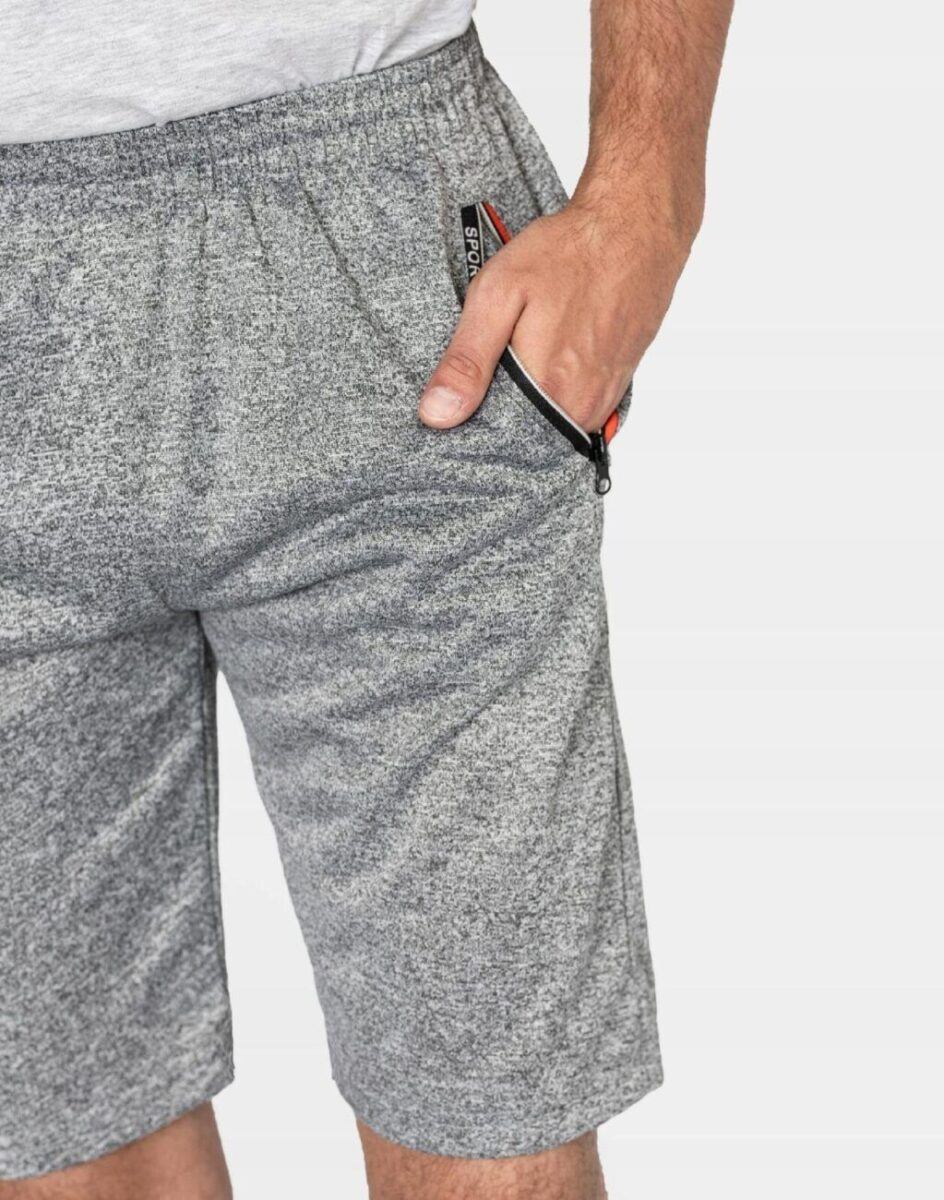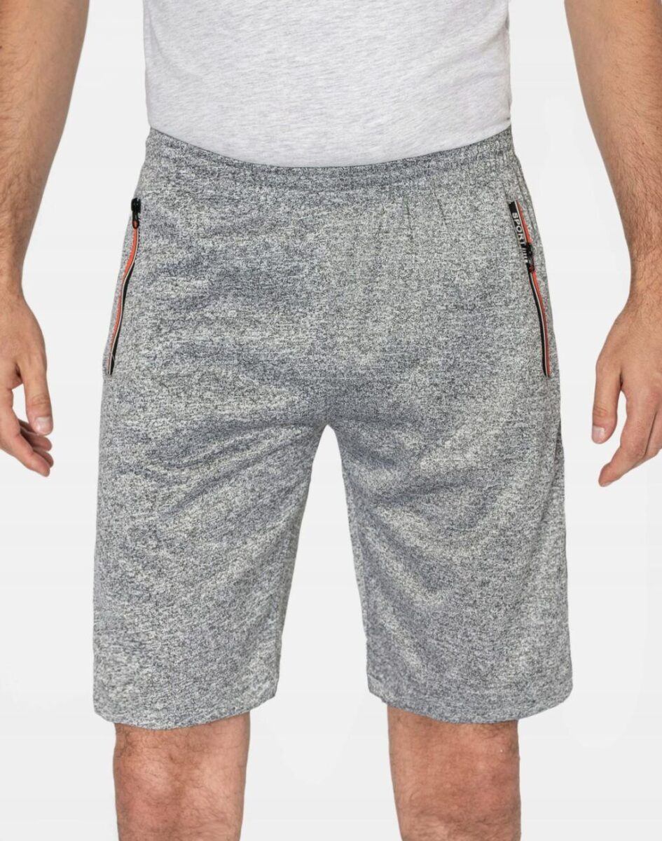 Krótkie sportowe spodenki męskie 66054, to komfortowo skrojony model z luźną nogawką przed kolano. Z założenia wyróżniają się dużą wygodą, a dopasowanie w pasie zapewnia szeroki elastyczny pas ściągający oraz dodatkowo wpuszczona w pasek taśma regulacyjna z możliwością jej zawiązywania. Na bokach mają dwie wpuszczane kieszenie na dłonie zasuwane na zamki błyskawiczne.