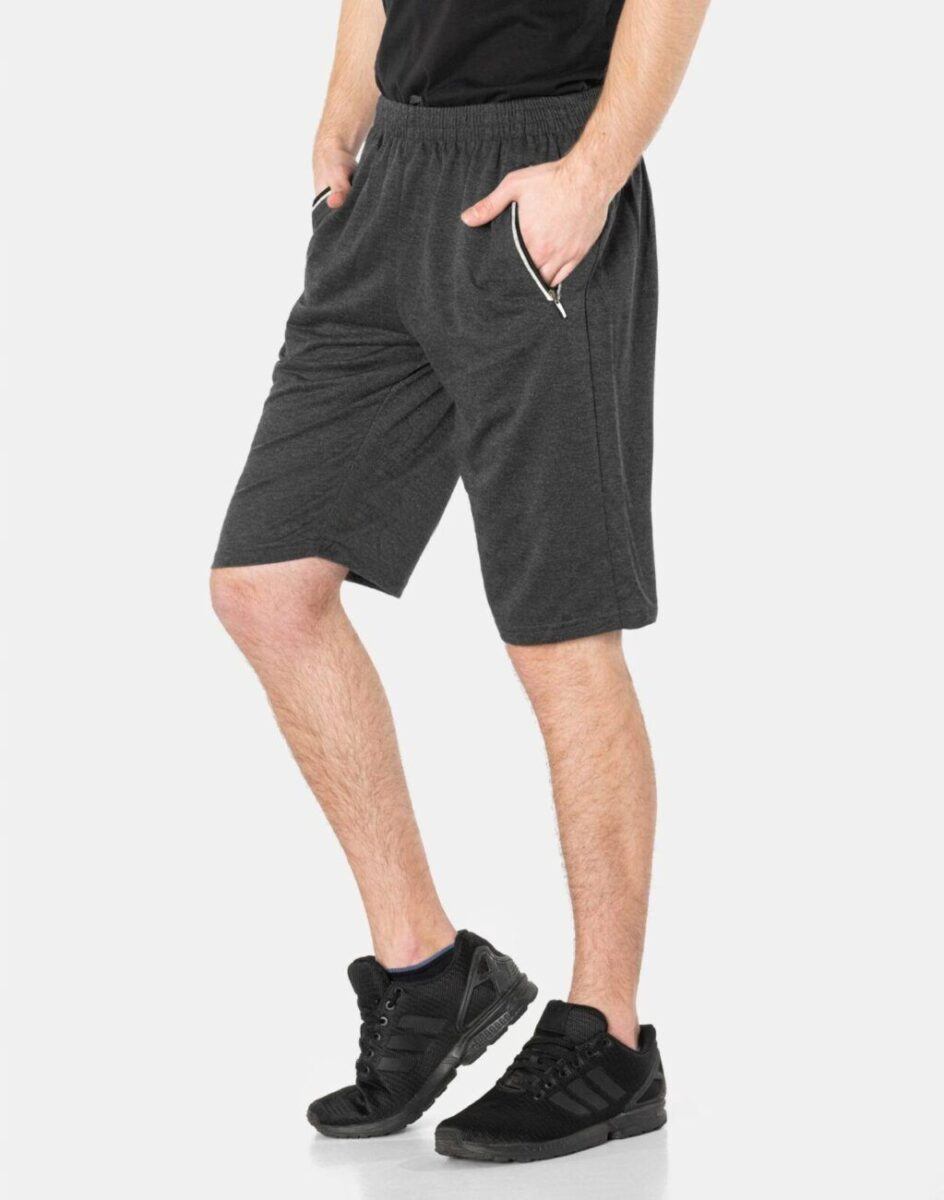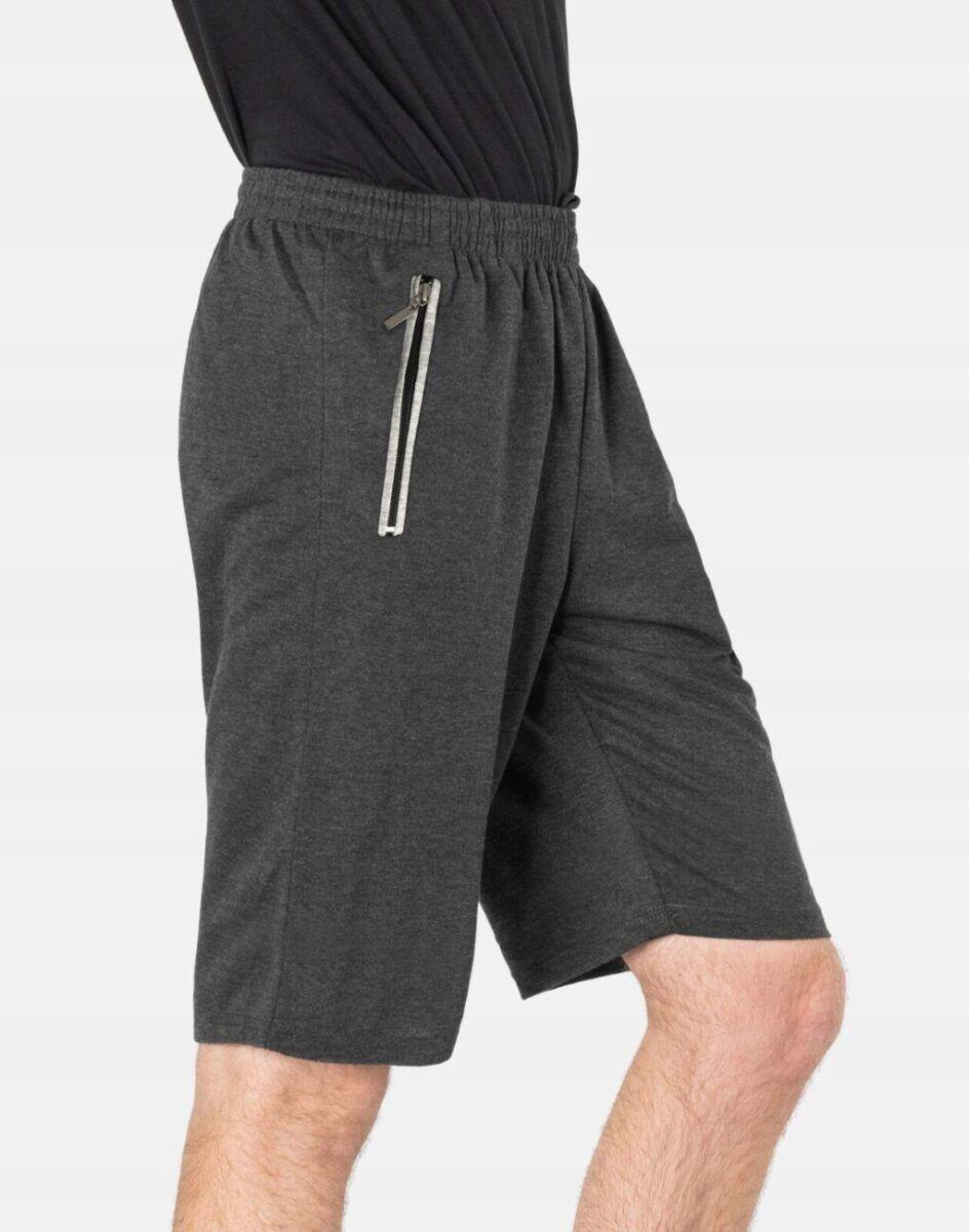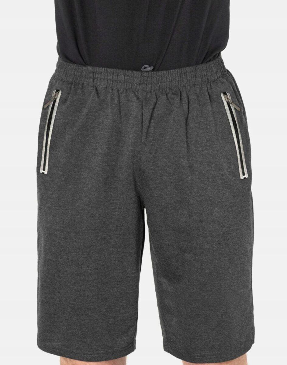 Krótkie sportowe spodenki męskie 6377, to komfortowo skrojony model z luźną nogawką przed kolano. Z założenia wyróżniają się dużą wygodą, a dopasowanie w pasie zapewnia szeroki elastyczny pas ściągający oraz dodatkowo wpuszczona w pasek taśma regulacyjna z możliwością jej zawiązywania. Na bokach mają dwie wpuszczane kieszenie na dłonie zasuwane na zamki błyskawiczne.