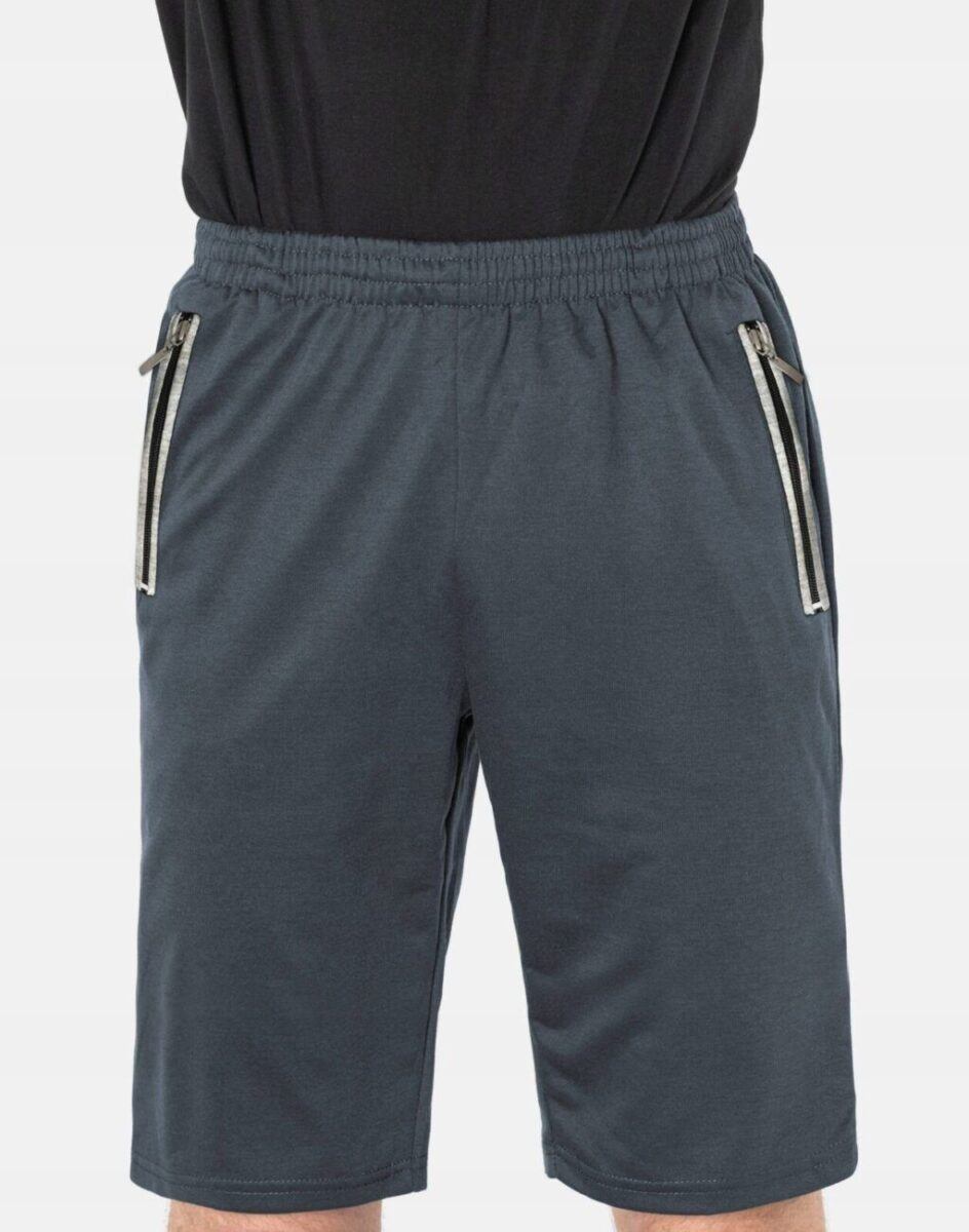 Krótkie sportowe spodenki męskie 6377, to komfortowo skrojony model z luźną nogawką przed kolano. Z założenia wyróżniają się dużą wygodą, a dopasowanie w pasie zapewnia szeroki elastyczny pas ściągający oraz dodatkowo wpuszczona w pasek taśma regulacyjna z możliwością jej zawiązywania. Na bokach mają dwie wpuszczane kieszenie na dłonie zasuwane na zamki błyskawiczne.