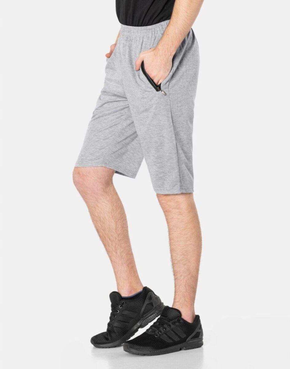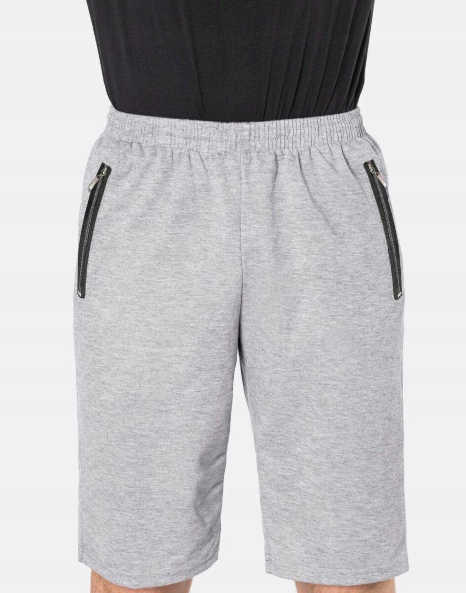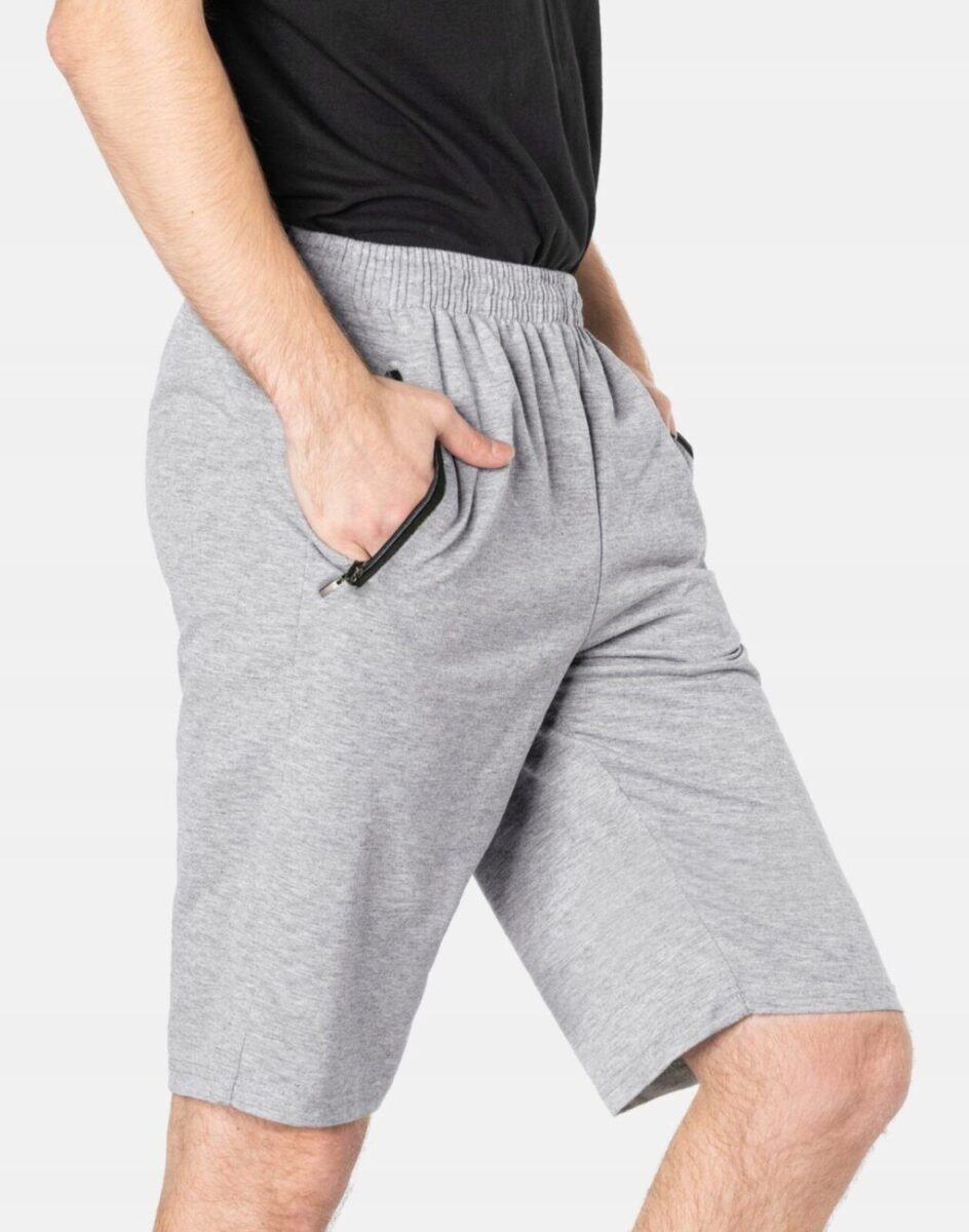 Krótkie sportowe spodenki męskie 6377, to komfortowo skrojony model z luźną nogawką przed kolano. Z założenia wyróżniają się dużą wygodą, a dopasowanie w pasie zapewnia szeroki elastyczny pas ściągający oraz dodatkowo wpuszczona w pasek taśma regulacyjna z możliwością jej zawiązywania. Na bokach mają dwie wpuszczane kieszenie na dłonie zasuwane na zamki błyskawiczne.