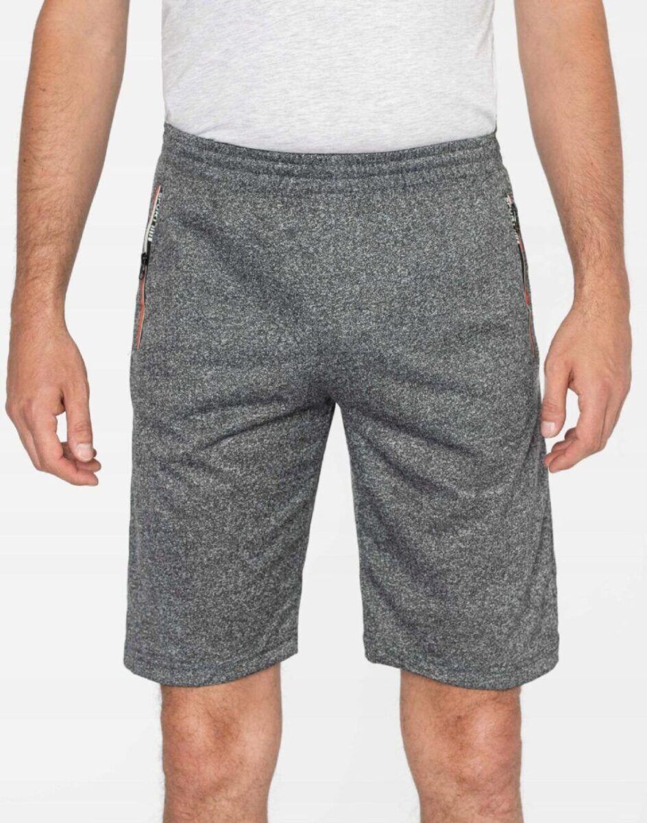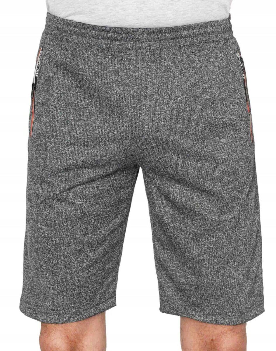 Krótkie sportowe spodenki męskie 66054, to komfortowo skrojony model z luźną nogawką przed kolano. Z założenia wyróżniają się dużą wygodą, a dopasowanie w pasie zapewnia szeroki elastyczny pas ściągający oraz dodatkowo wpuszczona w pasek taśma regulacyjna z możliwością jej zawiązywania. Na bokach mają dwie wpuszczane kieszenie na dłonie zasuwane na zamki błyskawiczne.