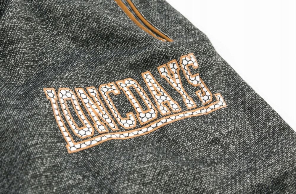 - Wzór: melanż z firmowym nadrukiem na nogawce