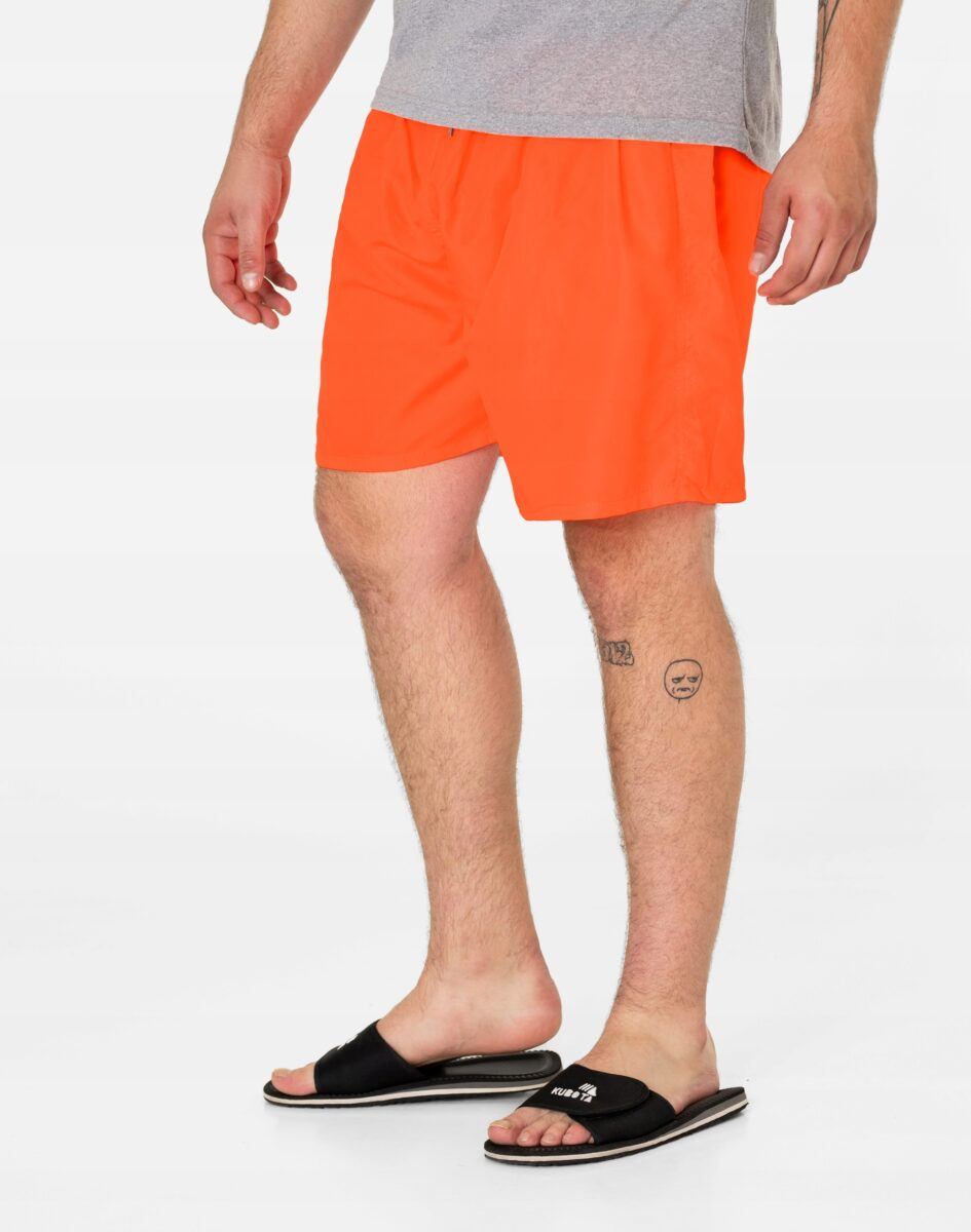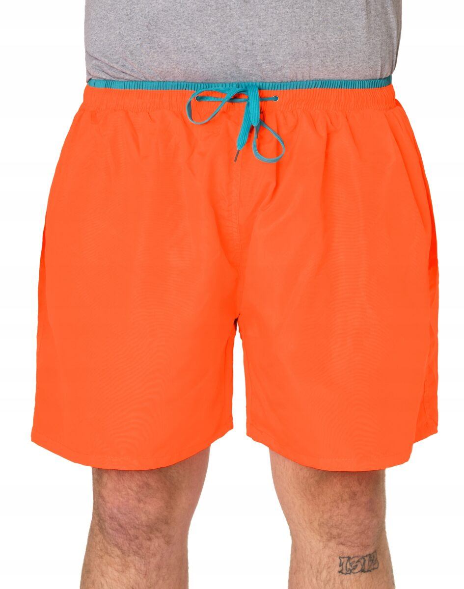 Jeśli często korzystasz z uroków plaży lub spędzasz czas w basenie to w tym sezonie trwa moda na krótkie sportowe spodenki w żywych, nasyconych kolorach z luźnymi nogawkami typu szorty. Wyjątkowo męskie, lekkie jak piórko, szorty kąpielowe model # F838 idealne na ciepłe i gorące letnie dni. Genialne jako sportowe spodenki kąpielowe będą też pasować do wakacyjnych stylizacji z T-shirtem albo przewiewnym tank topem lub koszulką polo. Wystarczy założyć klapki, t-shirt z nadrukiem, aby bez skrępowania wybrać się z plaży do pobliskiej restauracji. Są o wiele bardziej wygodne od klasycznych kąpielówek ponieważ luźne nogawki dają poczucie komfortu, niewymuszonego luzu i wygody, nie opinają ciała i nadają dobre proporcje męskiej sylwetce.