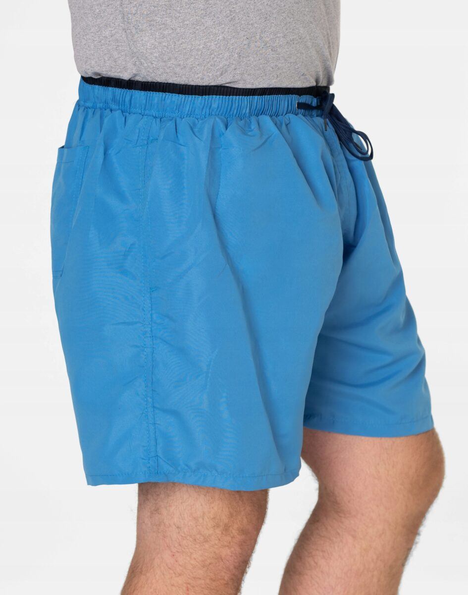 Jeśli często korzystasz z uroków plaży lub spędzasz czas w basenie to w tym sezonie trwa moda na krótkie sportowe spodenki w żywych, nasyconych kolorach z luźnymi nogawkami typu szorty. Wyjątkowo męskie, lekkie jak piórko, szorty kąpielowe model # F838 idealne na ciepłe i gorące letnie dni. Genialne jako sportowe spodenki kąpielowe będą też pasować do wakacyjnych stylizacji z T-shirtem albo przewiewnym tank topem lub koszulką polo. Wystarczy założyć klapki, t-shirt z nadrukiem, aby bez skrępowania wybrać się z plaży do pobliskiej restauracji. Są o wiele bardziej wygodne od klasycznych kąpielówek ponieważ luźne nogawki dają poczucie komfortu, niewymuszonego luzu i wygody, nie opinają ciała i nadają dobre proporcje męskiej sylwetce.