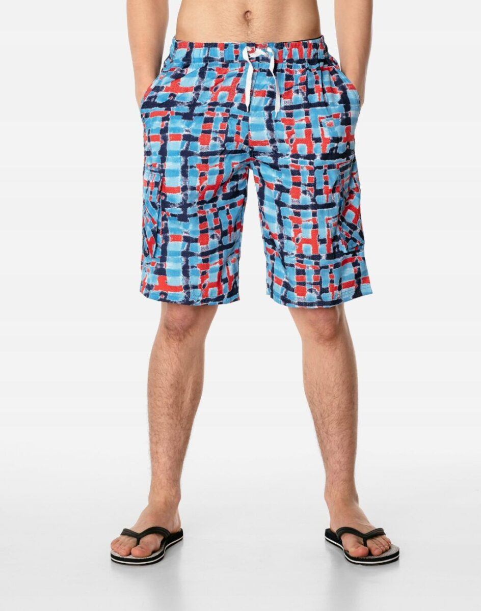 Spodenki mają 2 wpuszczane kieszenie na dłonie, 2 naszywane, kryte patkami zapinanymi na rzepy kieszenie na obu udach oraz wewnętrzne slipy z siateczki. Dopasowanie w pasie zapewnia szeroki elastyczny pas ściągający z taśmą regulacyjną do zawiązywania. Materiał z którego są wykonane jest szybkoschnący i odporny na szkodliwe działanie chloru i promieniowania słonecznego co wydłuża ich żywotność nawet jeśli często pływamy. Idealne do użytku na co dzień, uprawiania sportów wodnych, plażowych i rekreacji. Doskonale się noszą, są wygodne i szybkoschnące, świetne do pływania dlatego można wracać w nich do domu nawet krótko po wyjściu z wody. Niezbędne podczas wyjazdów na wakacje w których zawsze będziesz świetnie wyglądał i czuł się swobodnie na plaży.