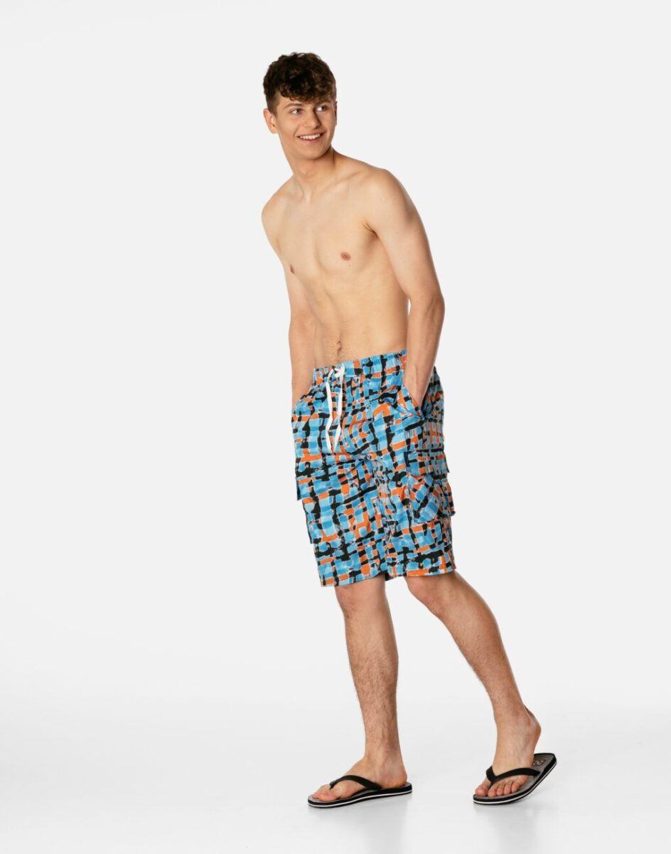 Spodenki mają 2 wpuszczane kieszenie na dłonie, 2 naszywane, kryte patkami zapinanymi na rzepy kieszenie na obu udach oraz wewnętrzne slipy z siateczki. Dopasowanie w pasie zapewnia szeroki elastyczny pas ściągający z taśmą regulacyjną do zawiązywania. Materiał z którego są wykonane jest szybkoschnący i odporny na szkodliwe działanie chloru i promieniowania słonecznego co wydłuża ich żywotność nawet jeśli często pływamy. Idealne do użytku na co dzień, uprawiania sportów wodnych, plażowych i rekreacji. Doskonale się noszą, są wygodne i szybkoschnące, świetne do pływania dlatego można wracać w nich do domu nawet krótko po wyjściu z wody. Niezbędne podczas wyjazdów na wakacje w których zawsze będziesz świetnie wyglądał i czuł się swobodnie na plaży.
