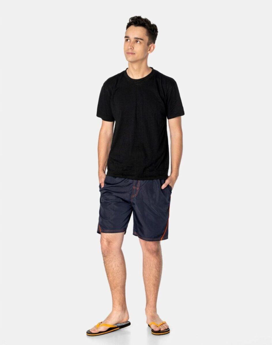 W tym sezonie trwa moda na krótkie sportowe spodenki w nasyconych kolorach z luźnymi nogawkami typu szorty. Wyjątkowo męskie, lekkie jak piórko, szorty kąpielowe MHM328 idealne na ciepłe i gorące letnie dni. Genialne jako sportowe spodenki kąpielowe będą też pasować do wakacyjnych stylizacji z T-shirtem albo przewiewnym tank topem lub koszulką polo. Wystarczy założyć klapki, t-shirt z nadrukiem, aby bez skrępowania wybrać się do pobliskiej restauracji. Są o wiele bardziej wygodne od klasycznych kąpielówek ponieważ luźne nogawki dają poczucie komfortu, niewymuszonego luzu i wygody, nie opinają ciała i nadają dobre proporcje męskiej sylwetce.