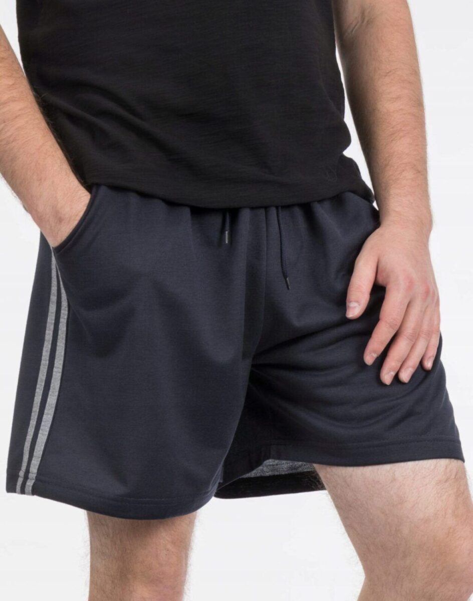 Męskie sportowe spodenki bawełniane o luźnym kroju. Bardzo lekkie i wygodne, uszyte z przyjemnego, oddychającego materiału, idealne na co dzień jako element domowego stroju, jak i na ciepłe i gorące dni wiosny i lata. Nadają się na spacer, do uprawiania różnych dyscyplin sportowych i rekreacji. Doskonale sprawdzą się podczas czasu wolnego.
