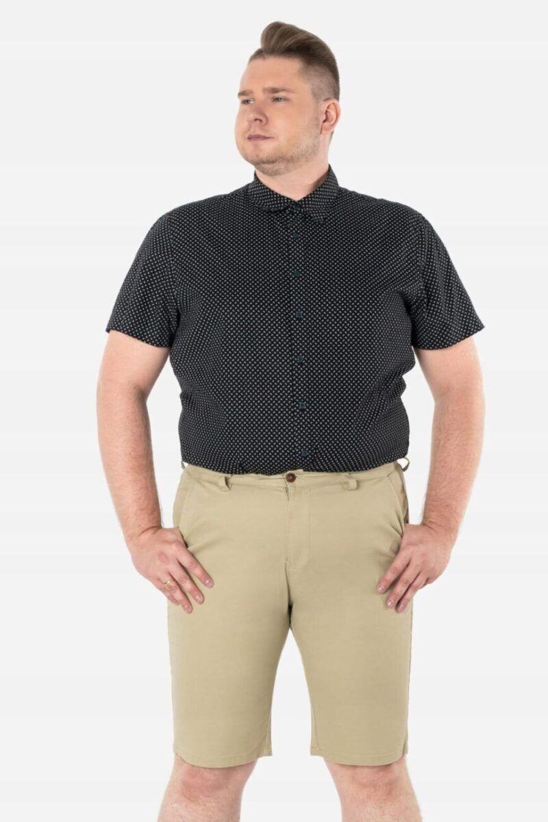Uszyte z cienkiej tkaniny bawełnianej z niewielkim dodatkiem lycry, o sprawdzonym przez wielu klientów kroju, lekkie i wygodne idealne na co dzień jako element casualowego stroju czyniąc go lekkim i dostosowanym do wysokich temperatur. Naturalna bawełna gwarantuje świetną przepuszczalność powietrza, wchłanianie potu i oddychanie skóry, a niewielki dodatek lycry sprawia, że spodenki są bardziej elastyczne co pozwala na pełną swobodę ruchów, daje wygodę przy siadaniu i zapewnia ogromny komfort noszenia. Wykonane według najnowszych trendów przewidzianych na ten sezon. Zapinane na kryty zamek błyskawiczny i guzik. Z przodu ukośne, klasyczne kieszenie na dłonie, z tyłu dwie kieszenie wpuszczane. W pasie szlufki umożliwiające stylizacje z paskiem. Najmodniejsza obecnie długość nogawki w „kolano”. Idealne na co dzień jako element casualowego stroju czyniąc go lekkim i dostosowanym do wysokich temperatur.