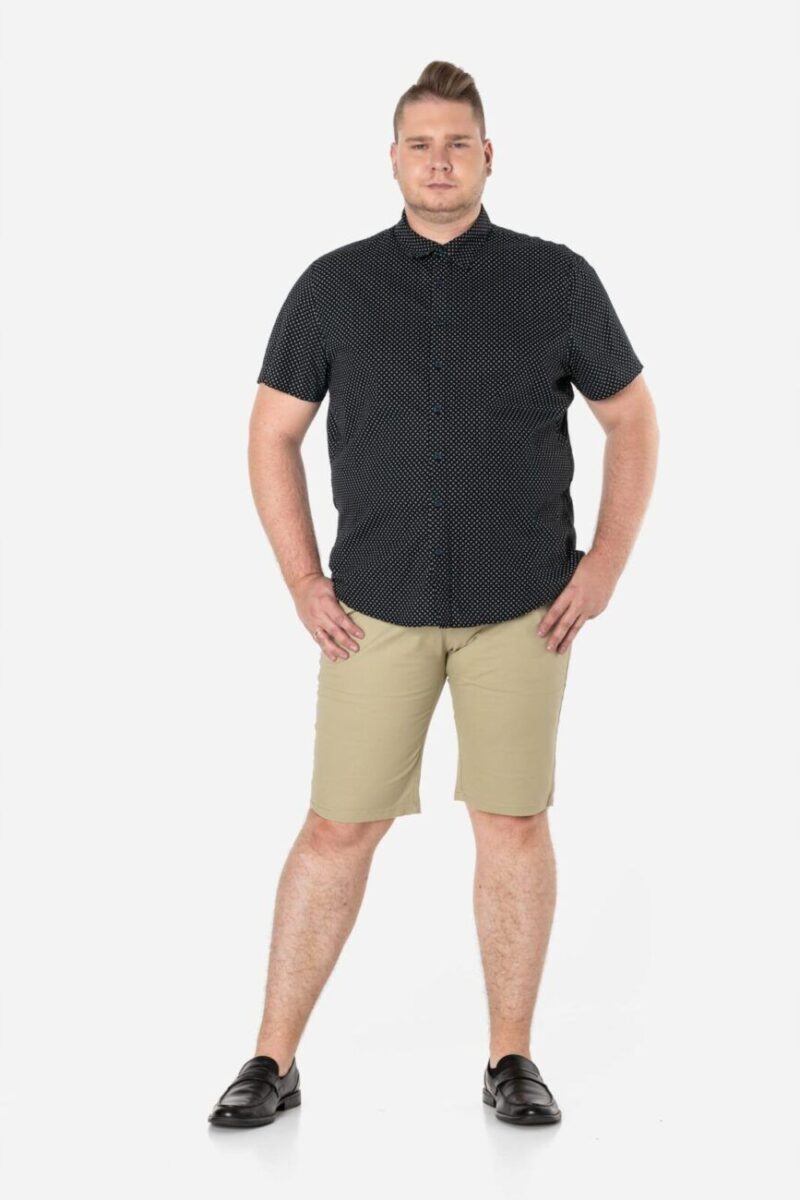 Uszyte z cienkiej tkaniny bawełnianej z niewielkim dodatkiem lycry, o sprawdzonym przez wielu klientów kroju, lekkie i wygodne idealne na co dzień jako element casualowego stroju czyniąc go lekkim i dostosowanym do wysokich temperatur. Naturalna bawełna gwarantuje świetną przepuszczalność powietrza, wchłanianie potu i oddychanie skóry, a niewielki dodatek lycry sprawia, że spodenki są bardziej elastyczne co pozwala na pełną swobodę ruchów, daje wygodę przy siadaniu i zapewnia ogromny komfort noszenia. Wykonane według najnowszych trendów przewidzianych na ten sezon. Zapinane na kryty zamek błyskawiczny i guzik. Z przodu ukośne, klasyczne kieszenie na dłonie, z tyłu dwie kieszenie wpuszczane. W pasie szlufki umożliwiające stylizacje z paskiem. Najmodniejsza obecnie długość nogawki w „kolano”. Idealne na co dzień jako element casualowego stroju czyniąc go lekkim i dostosowanym do wysokich temperatur.