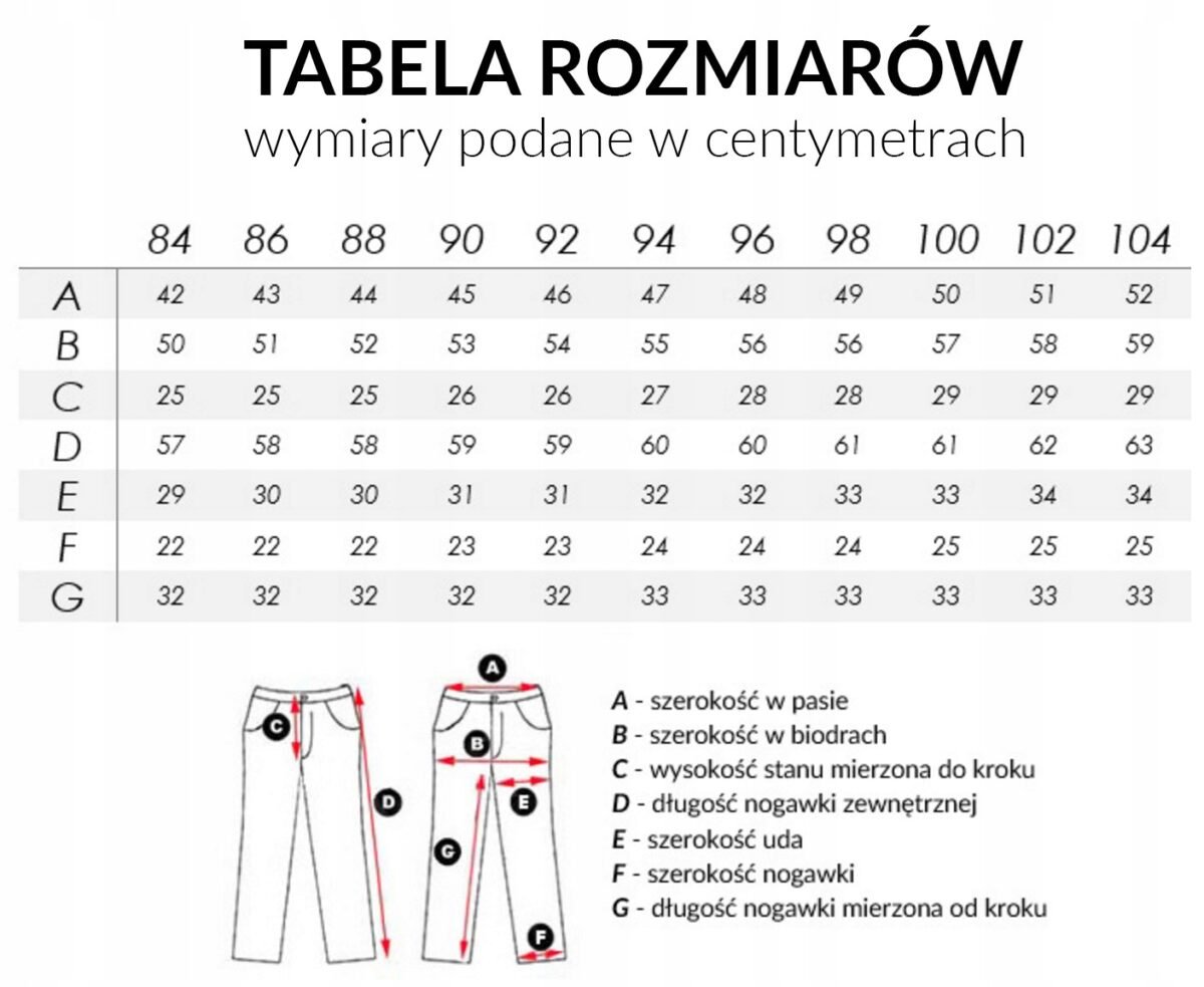 Obwód pasa: 104 cm