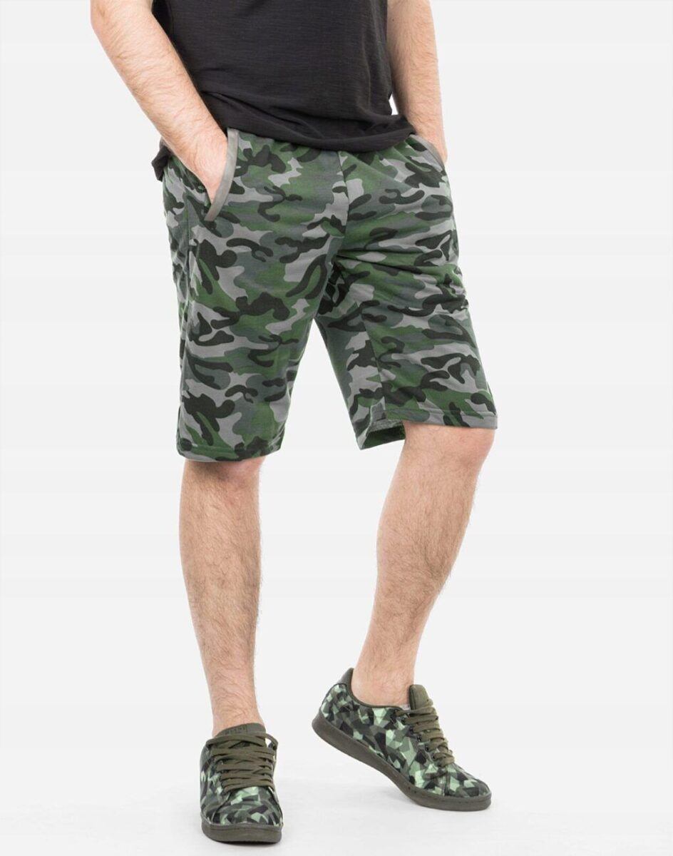 Wakacje to czas ubrań, które łączą w sobie atrakcyjny wygląd, komfort i wygodę – takich, jak lekkie i przewiewne spodenki dresowe w modnych wzorach militarnych moro. Oddychające i wygodne, uszyte z naturalnej dzianiny bawełnianej o gramaturze 220 g/m2 z dodatkiem poliestru, zapewniającej maksymalną wygodę i komfort ich użytkowania. Dodatek poliestru to gwarancja pełnej swobody ruchów oraz stabilności rozmiarów po wielokrotnym praniu. Idealne na co dzień jako element domowego stroju, jak i na ciepłe i gorące dni wiosny i lata. Nadają się na spacer, do uprawiania różnych dyscyplin sportowych i rekreacji. Doskonale sprawdzą się podczas czasu wolnego.