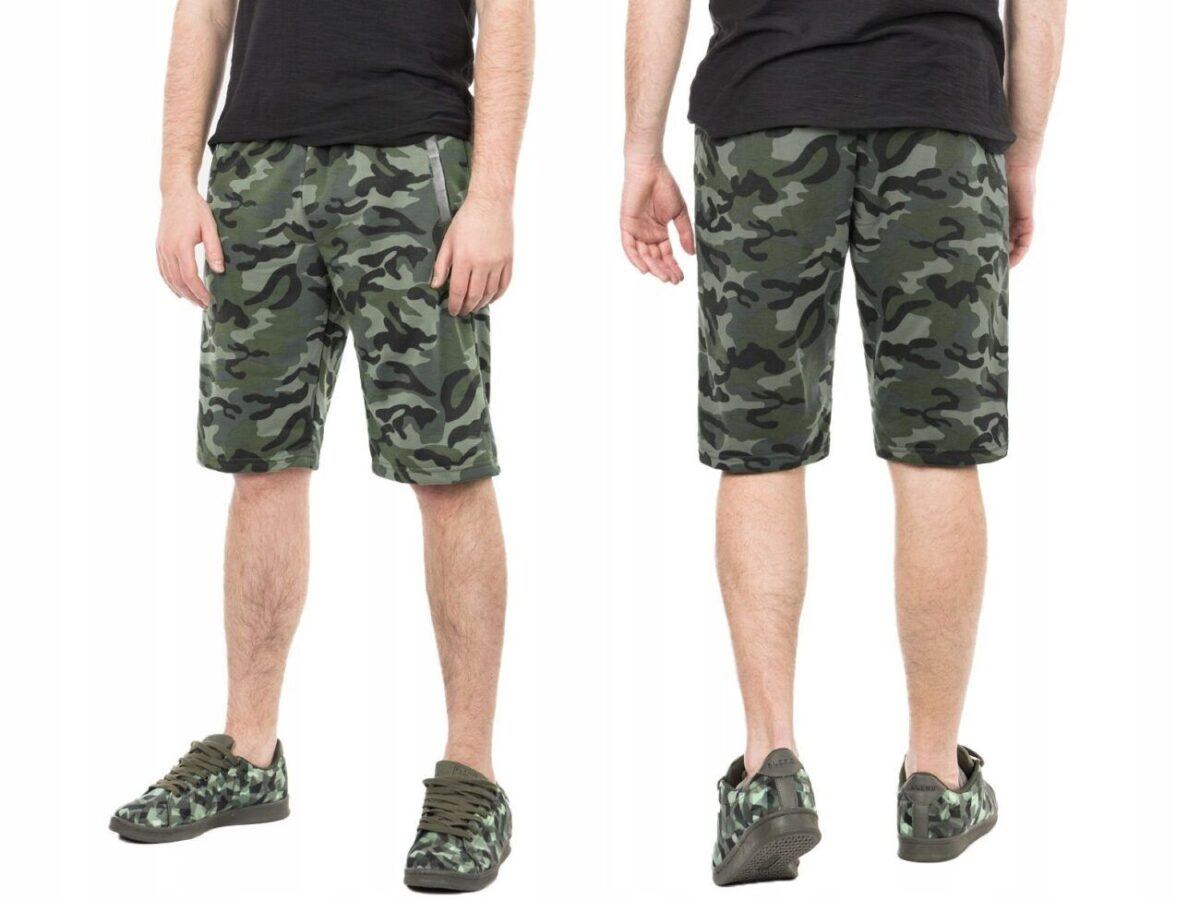 Wakacje to czas ubrań, które łączą w sobie atrakcyjny wygląd, komfort i wygodę – takich, jak lekkie i przewiewne spodenki dresowe w modnych wzorach militarnych moro. Oddychające i wygodne, uszyte z naturalnej dzianiny bawełnianej o gramaturze 220 g/m2 z dodatkiem poliestru, zapewniającej maksymalną wygodę i komfort ich użytkowania. Dodatek poliestru to gwarancja pełnej swobody ruchów oraz stabilności rozmiarów po wielokrotnym praniu. Idealne na co dzień jako element domowego stroju, jak i na ciepłe i gorące dni wiosny i lata. Nadają się na spacer, do uprawiania różnych dyscyplin sportowych i rekreacji. Doskonale sprawdzą się podczas czasu wolnego.