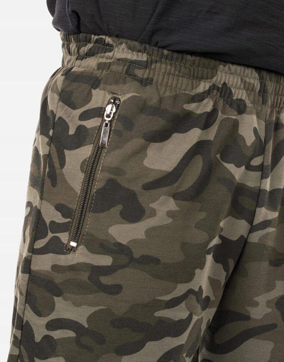 Wakacje to czas ubrań, które łączą w sobie atrakcyjny wygląd, komfort i wygodę – takich, jak lekkie i przewiewne spodenki dresowe w modnych wzorach militarnych moro. Oddychające i wygodne, uszyte z naturalnej dzianiny bawełnianej o gramaturze 220 g/m2 z dodatkiem poliestru, zapewniającej maksymalną wygodę i komfort ich użytkowania. Dodatek poliestru to gwarancja pełnej swobody ruchów oraz stabilności rozmiarów po wielokrotnym praniu. Idealne na co dzień jako element domowego stroju, jak i na ciepłe i gorące dni wiosny i lata. Nadają się na spacer, do uprawiania różnych dyscyplin sportowych i rekreacji. Doskonale sprawdzą się podczas czasu wolnego.