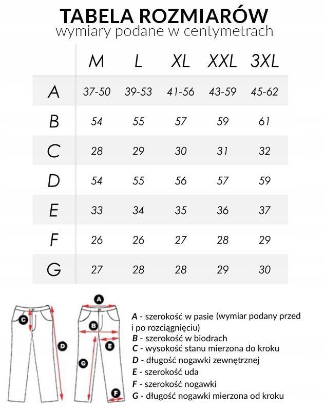 Z założenia wyróżniają się dużą wygodą, dopasowanie w pasie zapewnia szeroki elastyczny ściągacz oraz dodatkowo wpuszczona w pasek taśma regulacyjna z możliwością jej zawiązywania. Na bokach dwie wpuszczane kieszenie na dłonie, zasuwane na zamki błyskawiczne. Tył gładki bez kieszeni. Komfortowy swobodny krój.