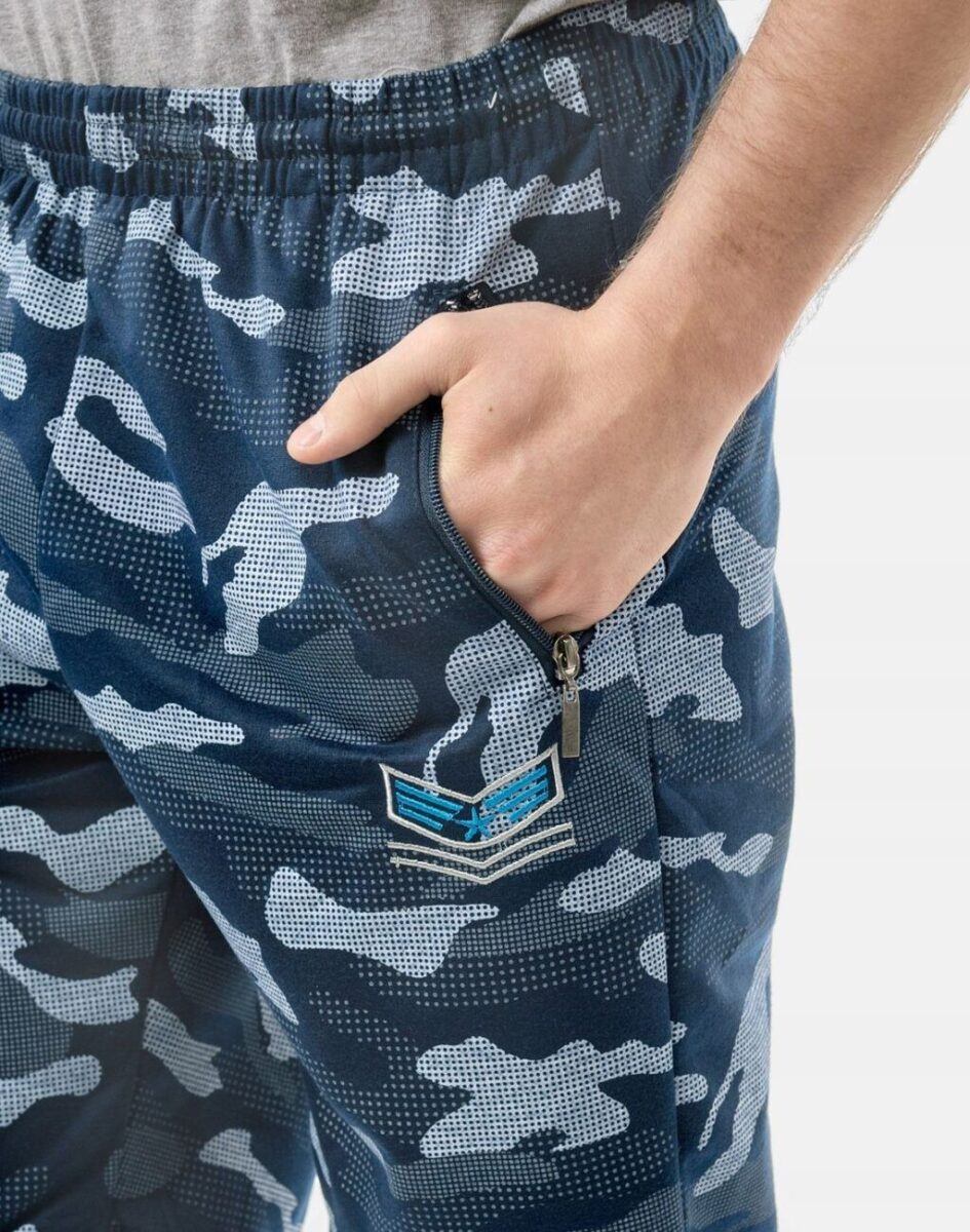Wakacje to czas ubrań, które łączą w sobie atrakcyjny wygląd, komfort i wygodę – takich, jak lekkie i przewiewne spodenki dresowe w modnych wzorach militarnych moro. Uszyte z naturalnej, miękkiej, ekologicznej bawełny o gramaturze 190g/m2 gwarantujące świetną przepuszczalność powietrza, wchłanianie potu i oddychanie skóry. Dodatek poliestru to gwarancja pełnej swobody ruchów oraz stabilności rozmiarów po wielokrotnym praniu. Odpowiedni krój spodenek nie ogranicza swobody ruchów a niewielka gramatura pozytywnie wpływa na komfort użytkowania zapewniając dobrą cyrkulację powietrza. Idealne na co dzień jako element domowego stroju, jak i na ciepłe i gorące dni wiosny i lata. Nadają się na spacer, wizyty na siłowni, wakacyjne wyjazdy do uprawiania różnych dyscyplin sportowych i rekreacji. Doskonale sprawdzą się podczas czasu wolnego.