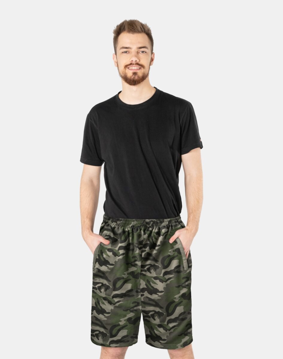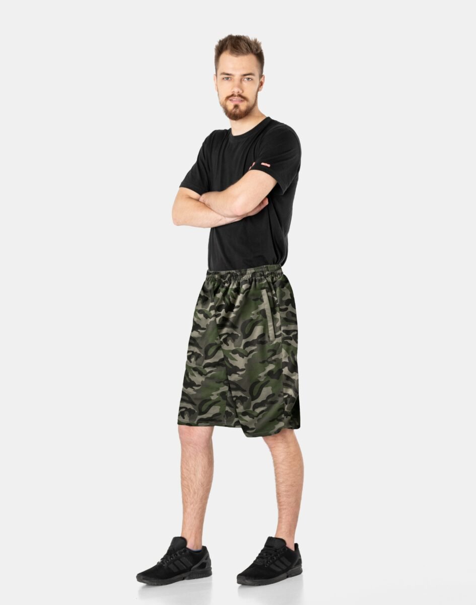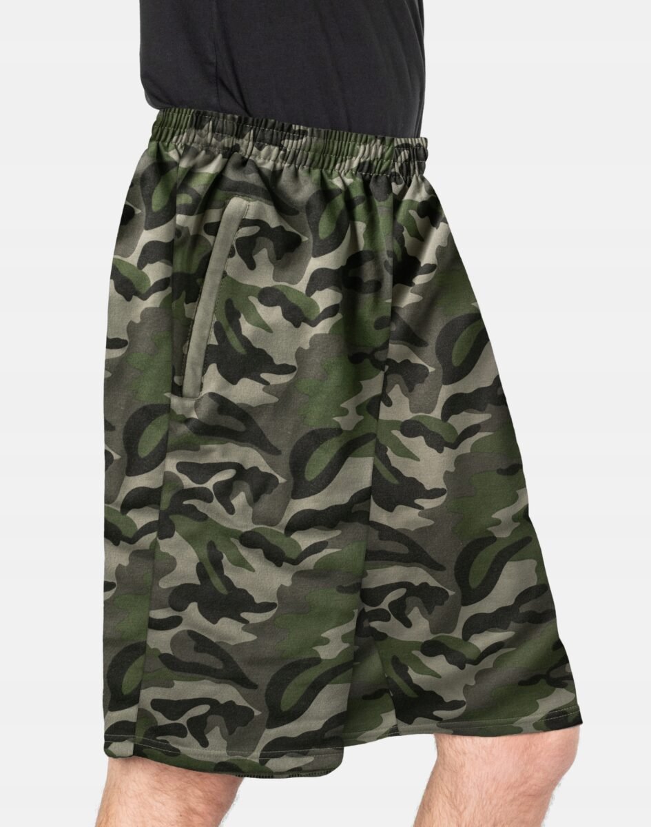 Wakacje to czas ubrań, które łączą w sobie atrakcyjny wygląd, komfort i wygodę – takich, jak lekkie i przewiewne spodenki dresowe w modnych wzorach militarnych moro. Uszyte z naturalnej, miękkiej, ekologicznej bawełny o gramaturze 190g/m2 gwarantujące świetną przepuszczalność powietrza, wchłanianie potu i oddychanie skóry. Dodatek poliestru to gwarancja pełnej swobody ruchów oraz stabilności rozmiarów po wielokrotnym praniu. Odpowiedni krój spodenek nie ogranicza swobody ruchów a niewielka gramatura pozytywnie wpływa na komfort użytkowania zapewniając dobrą cyrkulację powietrza. Idealne na co dzień jako element domowego stroju, jak i na ciepłe i gorące dni wiosny i lata. Nadają się na spacer, wizyty na siłowni, wakacyjne wyjazdy do uprawiania różnych dyscyplin sportowych i rekreacji. Doskonale sprawdzą się podczas czasu wolnego.