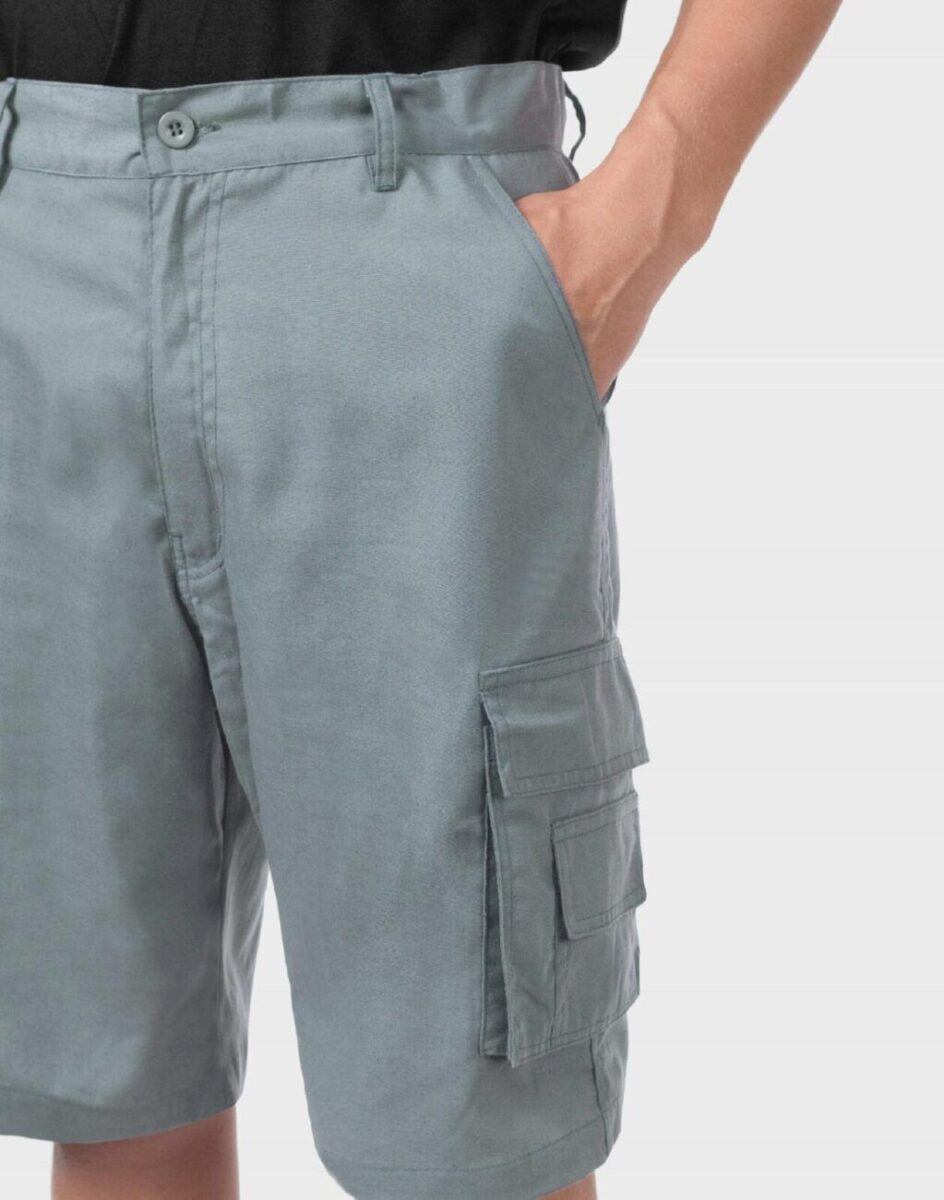 Krótkie spodenki bojówki o sprawdzonym kroju cienkie i wygodne idealne na co dzień jako element casualowego stroju czyniąc go lekkim i dostosowanym do wysokich temperatur. Z przodu posiadają dwie wpuszczane kieszenie na dłonie. Na lewym udzie dwie naszywane kieszenie (większa typu Cargo) kryte patkami zapinanymi na rzepy. Na prawym udzie pojedyncza naszywana kieszeń typu Cargo kryta patką zapinaną na rzep. Z tyłu jedna kieszeń naszywana również kryta patką zapinaną na rzep. W pasie szlufki umożliwiające stylizacje z paskiem. Najmodniejsza obecnie długość w „kolano”.