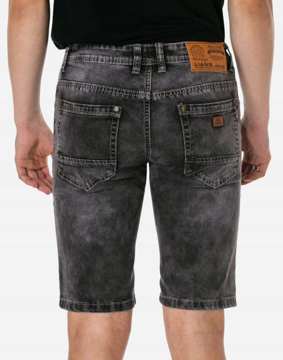 Krótkie spodenki jeansowe z fabrycznym efektem znoszonego, zniszczonego jeansu w stylu „used-look” to wygodne rozwiązanie na ciepłe, gorące dni i niezbędny element wakacyjnej garderoby do tworzenia udanych letnich stylizacji. W procesie produkcji poddane zostały specjalnym zabiegom postarzającym materiał polegającym na wycieraniu, wielokrotnym wypieraniu barwnika i tworzeniu efektownych pomięć i przetarć mających na celu wywołanie tak modnego efektu starych, długo noszonych, zużytych jeansów. Wykonane z wysokiej jakości gęstej, trwałej i mocnej tkaniny jeansowej „Denim Dark Grey” z modnym efektem sprania i przetarciami w nieśmiertelnym stylu „Vintage”. Niewielki dodatek spandexu (lycra) sprawia, że spodenki są bardziej elastyczne co pozwala na pełną swobodę ruchów, daje komfort przy siadaniu i zapewnia ogromny komfort noszenia. Wygodne o sprawdzonym przez wielu zadowolonych klientów kroju, idealne na co dzień jako element casualowego stroju czyniąc go lekkim i dostosowanym do wysokich temperatur. Z przodu posiadają dwie wpuszczane kieszenie na dłonie oraz bilonówkę. Z tyłu dwie kieszenie naszywane. W pasie szlufki umożliwiające stylizacje z paskiem. Najmodniejsza obecnie długość „przed kolano”. Najbardziej podatne na uszkodzenia miejsca wzmocnione są dodatkowymi przeszyciami i ozdobnymi metalowymi nitami.