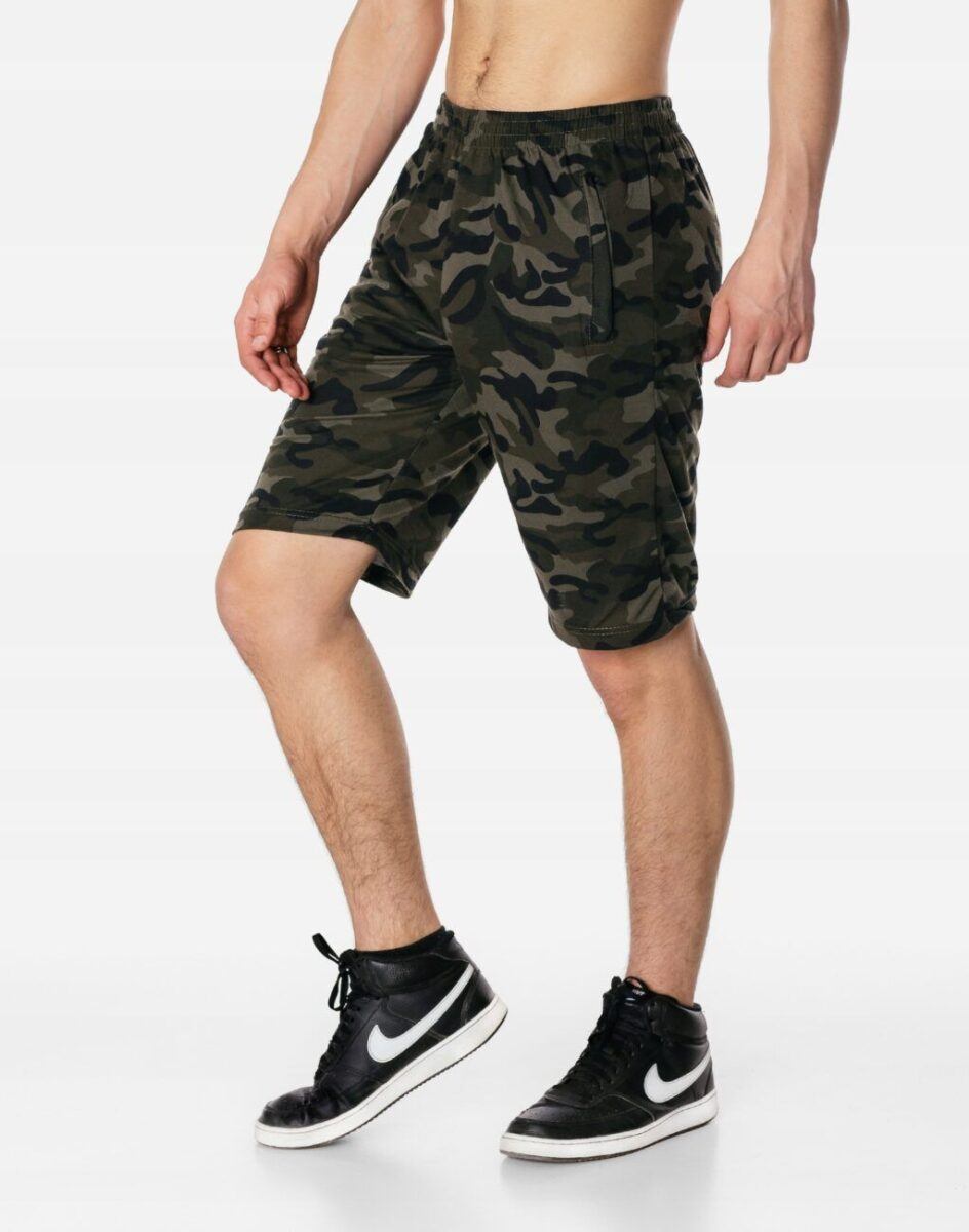 Wakacje to czas ubrań, które łączą w sobie atrakcyjny wygląd, komfort i wygodę – takich, jak lekkie i przewiewne spodenki dresowe w modnych wzorach militarnych moro. Uszyte z naturalnej, miękkiej, ekologicznej bawełny o gramaturze 190g/m2 gwarantujące świetną przepuszczalność powietrza, wchłanianie potu i oddychanie skóry. Dodatek poliestru to gwarancja pełnej swobody ruchów oraz stabilności rozmiarów po wielokrotnym praniu. Odpowiedni krój spodenek nie ogranicza swobody ruchów a niewielka gramatura pozytywnie wpływa na komfort użytkowania zapewniając dobrą cyrkulację powietrza. Idealne na co dzień jako element domowego stroju, jak i na ciepłe i gorące dni wiosny i lata. Nadają się na spacer, wizyty na siłowni, wakacyjne wyjazdy do uprawiania różnych dyscyplin sportowych i rekreacji. Doskonale sprawdzą się podczas czasu wolnego.
