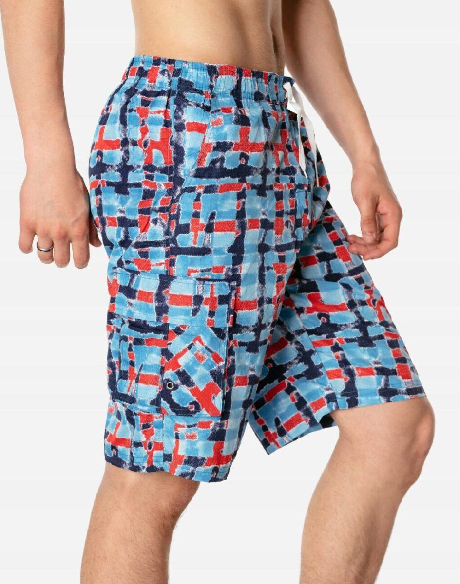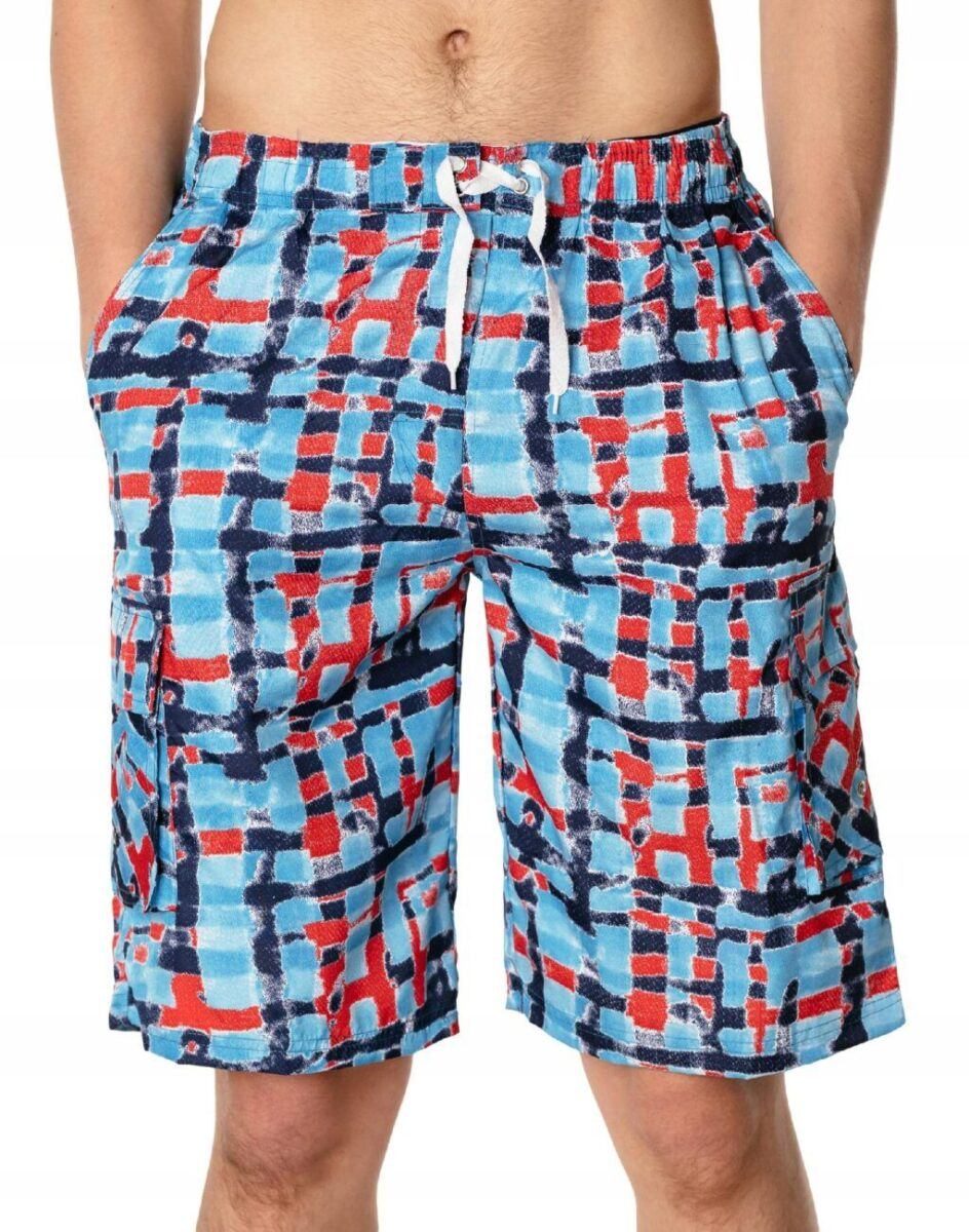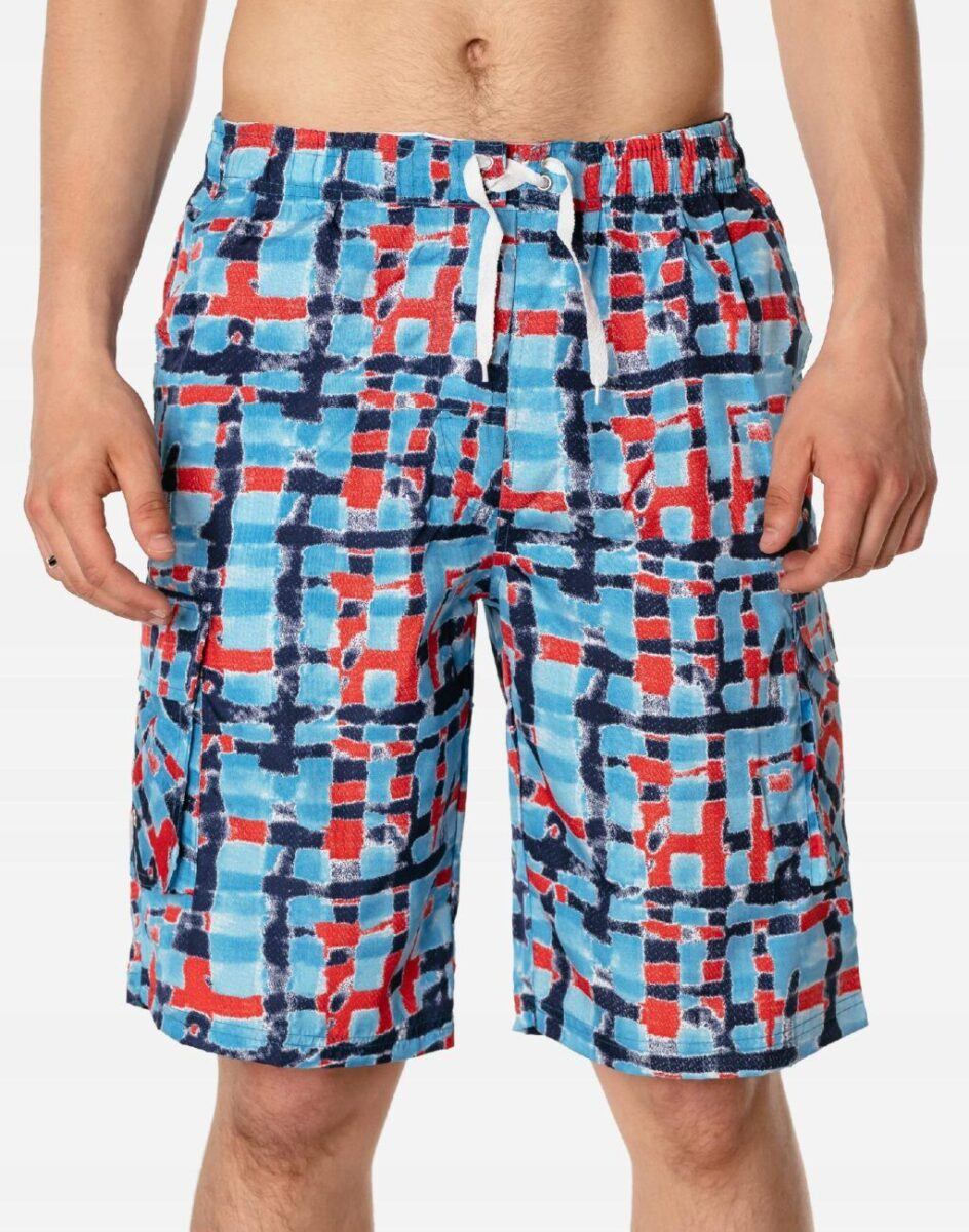 Spodenki mają 2 wpuszczane kieszenie na dłonie, 2 naszywane, kryte patkami zapinanymi na rzepy kieszenie na obu udach oraz wewnętrzne slipy z siateczki. Dopasowanie w pasie zapewnia szeroki elastyczny pas ściągający z taśmą regulacyjną do zawiązywania. Materiał z którego są wykonane jest szybkoschnący i odporny na szkodliwe działanie chloru i promieniowania słonecznego co wydłuża ich żywotność nawet jeśli często pływamy. Idealne do użytku na co dzień, uprawiania sportów wodnych, plażowych i rekreacji. Doskonale się noszą, są wygodne i szybkoschnące, świetne do pływania dlatego można wracać w nich do domu nawet krótko po wyjściu z wody. Niezbędne podczas wyjazdów na wakacje w których zawsze będziesz świetnie wyglądał i czuł się swobodnie na plaży.