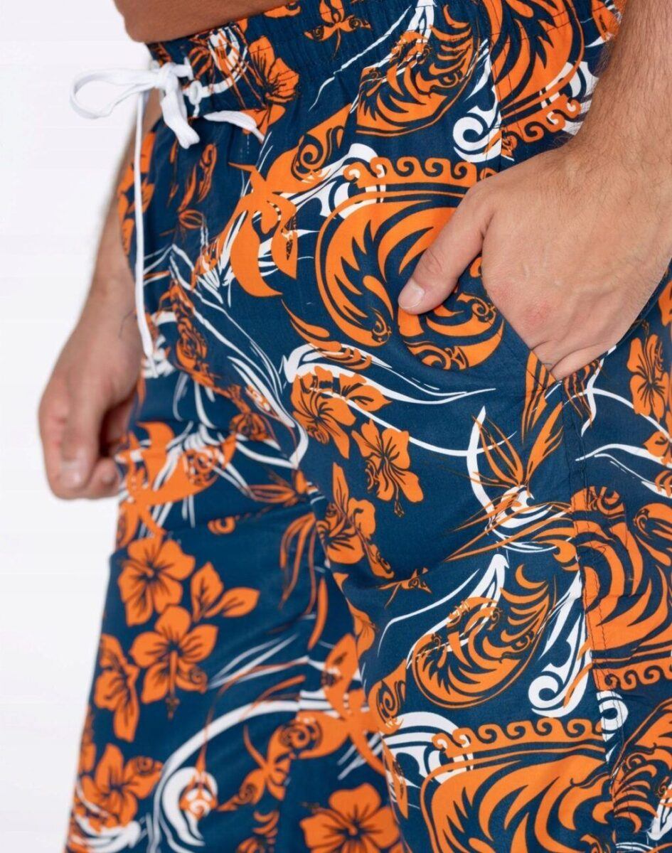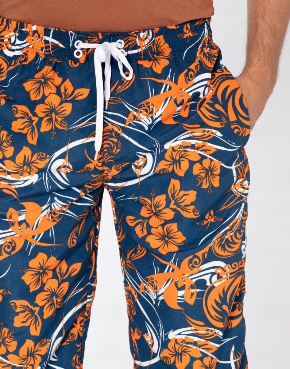 Spodenki mają 2 wpuszczane kieszenie na dłonie i wewnętrzne slipy z siateczki. Dopasowanie w pasie zapewnia szeroki elastyczny pas ściągający z taśmą regulacyjną do zawiązywania. Poliestrowy materiał z którego są wykonane jest szybkoschnący i odporny na szkodliwe działanie chloru i promieniowania słonecznego co wydłuża ich żywotność nawet jeśli często pływamy. Idealne do użytku na co dzień, uprawiania sportów wodnych, plażowych i rekreacji. Doskonale się noszą, są wygodne i szybkoschnące, świetne do pływania dlatego można wracać w nich do domu nawet krótko po wyjściu z wody. Niezbędne podczas wyjazdów na wakacje w których zawsze będziesz świetnie wyglądał i czuł się swobodnie na plaży.