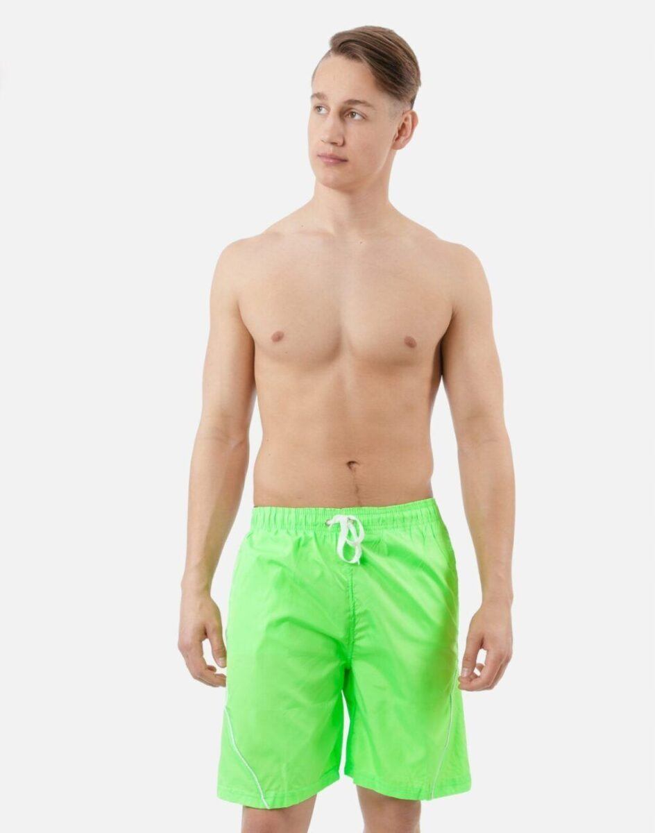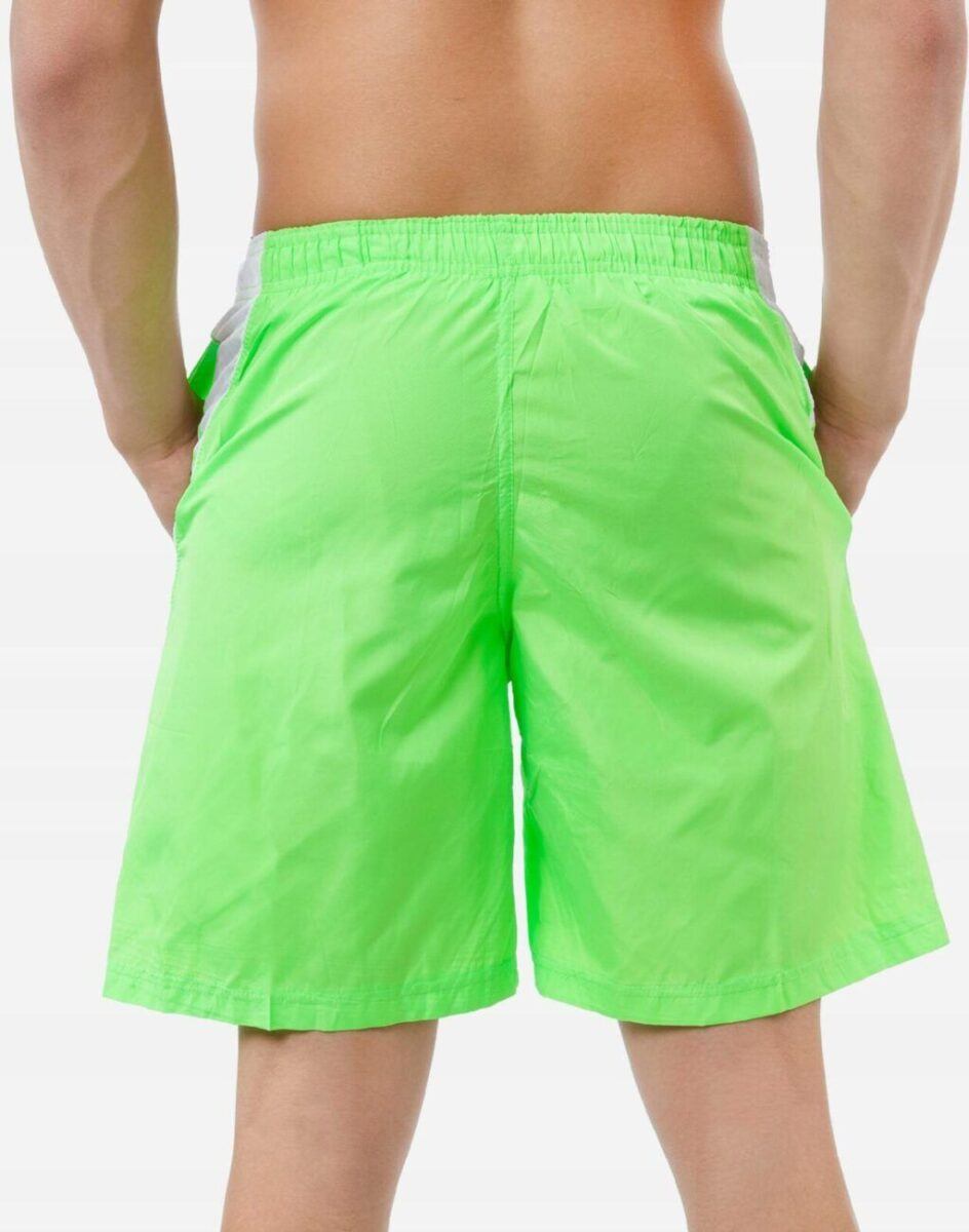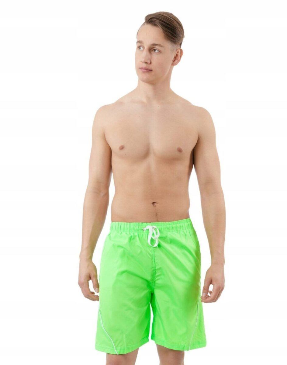 Spodenki mają 2 wpuszczane kieszenie na dłonie i wewnętrzne slipy z siateczki. Dopasowanie w pasie zapewnia szeroki elastyczny pas ściągający z taśmą regulacyjną do zawiązywania. Poliestrowy materiał z którego są wykonane jest szybkoschnący i odporny na szkodliwe działanie chloru i promieniowania słonecznego co wydłuża ich żywotność nawet jeśli często pływamy. Idealne do użytku na co dzień, uprawiania sportów wodnych, plażowych i rekreacji. Doskonale się noszą, są wygodne i szybkoschnące, świetne do pływania dlatego można wracać w nich do domu nawet krótko po wyjściu z wody. Niezbędne podczas wyjazdów na wakacje w których zawsze będziesz świetnie wyglądał i czuł się swobodnie na plaży.