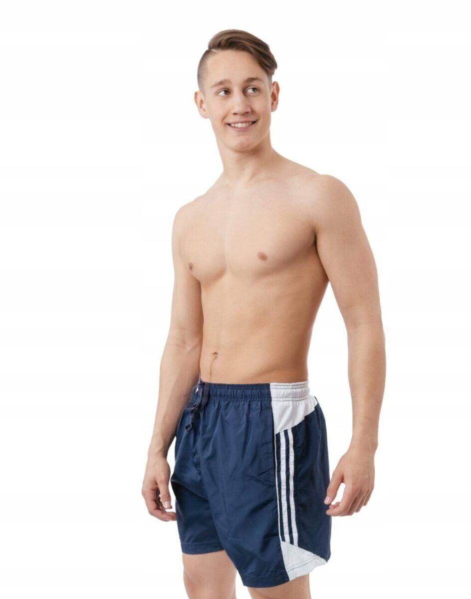 Spodenki mają 2 wpuszczane kieszenie na dłonie i wewnętrzne slipy z siateczki. Dopasowanie w pasie zapewnia szeroki elastyczny pas ściągający z taśmą regulacyjną do zawiązywania. Poliestrowy materiał z którego są wykonane jest szybkoschnący i odporny na szkodliwe działanie chloru i promieniowania słonecznego co wydłuża ich żywotność nawet jeśli często pływamy. Idealne do użytku na co dzień, uprawiania sportów wodnych, plażowych i rekreacji. Doskonale się noszą, są wygodne i szybkoschnące, świetne do pływania dlatego można wracać w nich do domu nawet krótko po wyjściu z wody. Niezbędne podczas wyjazdów na wakacje w których zawsze będziesz świetnie wyglądał i czuł się swobodnie na plaży.