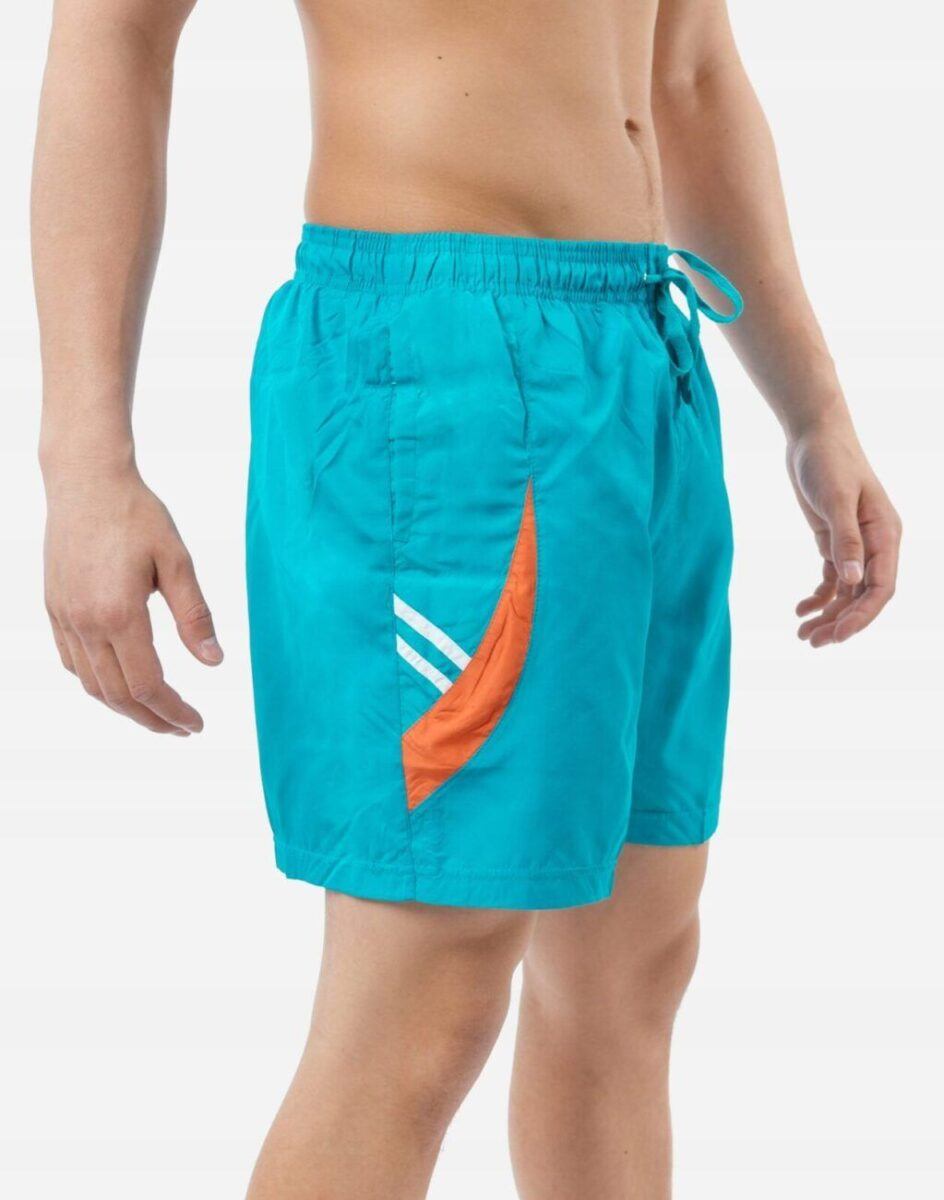 Spodenki mają 2 wpuszczane kieszenie na dłonie i wewnętrzne slipy z siateczki. Dopasowanie w pasie zapewnia szeroki elastyczny pas ściągający z taśmą regulacyjną do zawiązywania. Poliestrowy materiał z którego są wykonane jest szybkoschnący i odporny na szkodliwe działanie chloru i promieniowania słonecznego co wydłuża ich żywotność nawet jeśli często pływamy. Idealne do użytku na co dzień, uprawiania sportów wodnych, plażowych i rekreacji. Doskonale się noszą, są wygodne i szybkoschnące, świetne do pływania dlatego można wracać w nich do domu nawet krótko po wyjściu z wody. Niezbędne podczas wyjazdów na wakacje w których zawsze będziesz świetnie wyglądał i czuł się swobodnie na plaży.