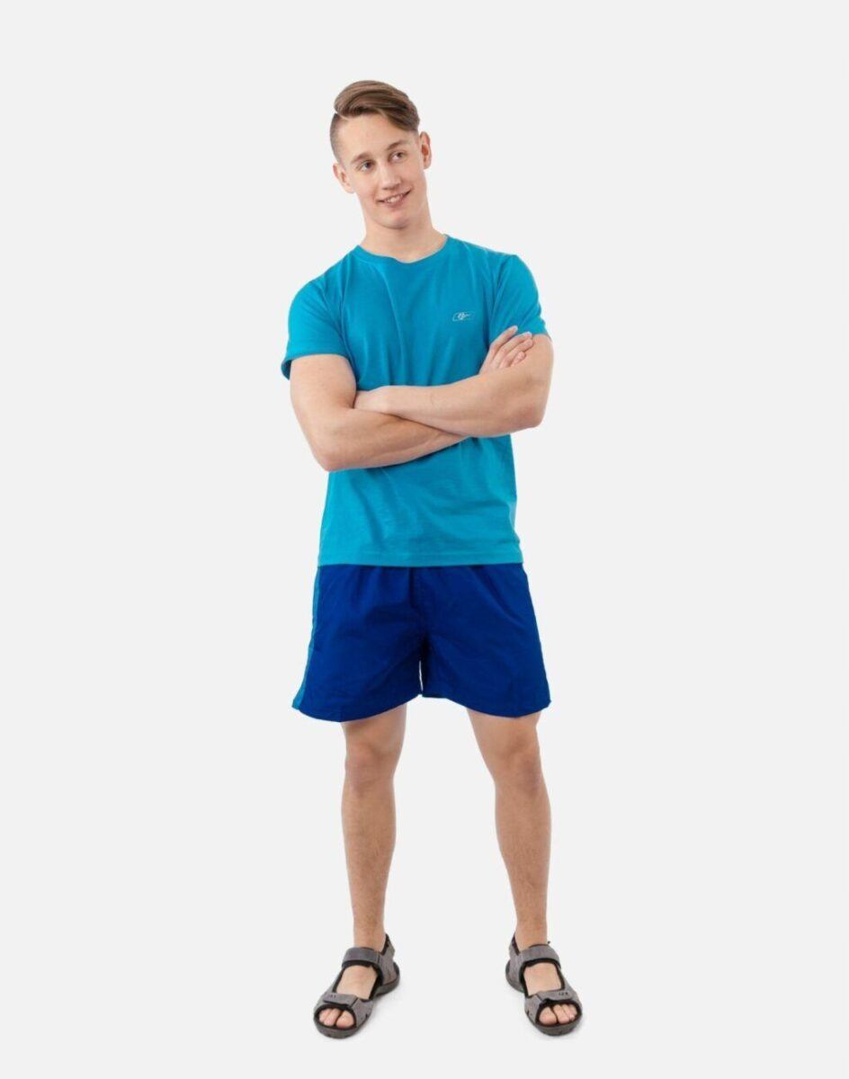 Spodenki mają 2 wpuszczane kieszenie na dłonie i wewnętrzne slipy z siateczki. Dopasowanie w pasie zapewnia szeroki elastyczny pas ściągający z taśmą regulacyjną do zawiązywania. Poliestrowy materiał z którego są wykonane jest szybkoschnący i odporny na szkodliwe działanie chloru i promieniowania słonecznego co wydłuża ich żywotność nawet jeśli często pływamy. Idealne do użytku na co dzień, uprawiania sportów wodnych, plażowych i rekreacji. Doskonale się noszą, są wygodne i szybkoschnące, świetne do pływania dlatego można wracać w nich do domu nawet krótko po wyjściu z wody. Niezbędne podczas wyjazdów na wakacje w których zawsze będziesz świetnie wyglądał i czuł się swobodnie na plaży.