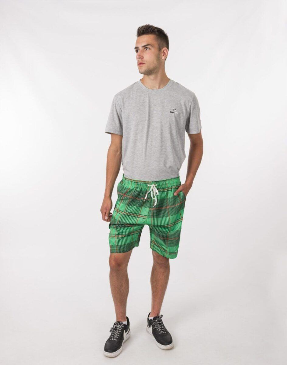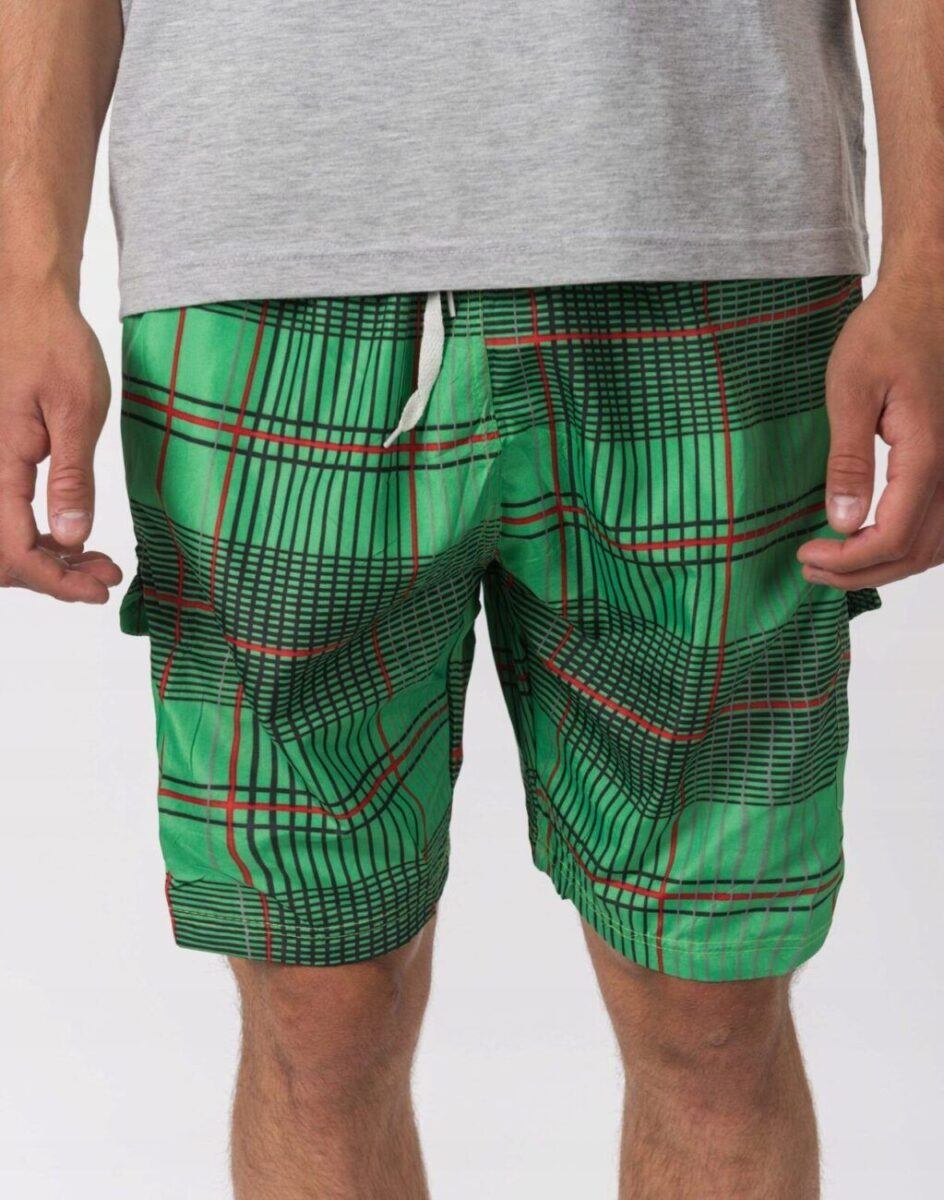 W tym sezonie trwa moda na kraciaste spodenki kąpielowe typu bermudy. Wyjątkowo męskie, lekkie jak piórko, spodenki kąpielowe model 297 idealne na ciepłe i gorące letnie dni. Genialne jako sportowe spodenki kąpielowe będą też pasować do wakacyjnych stylizacji z T-shirtem albo przewiewnym tank topem lub koszulką polo. Są o wiele bardziej wygodne od klasycznych kąpielówek, ponieważ są luźniejsze, nie opinają ciała i nadają dobre proporcje męskiej sylwetce.