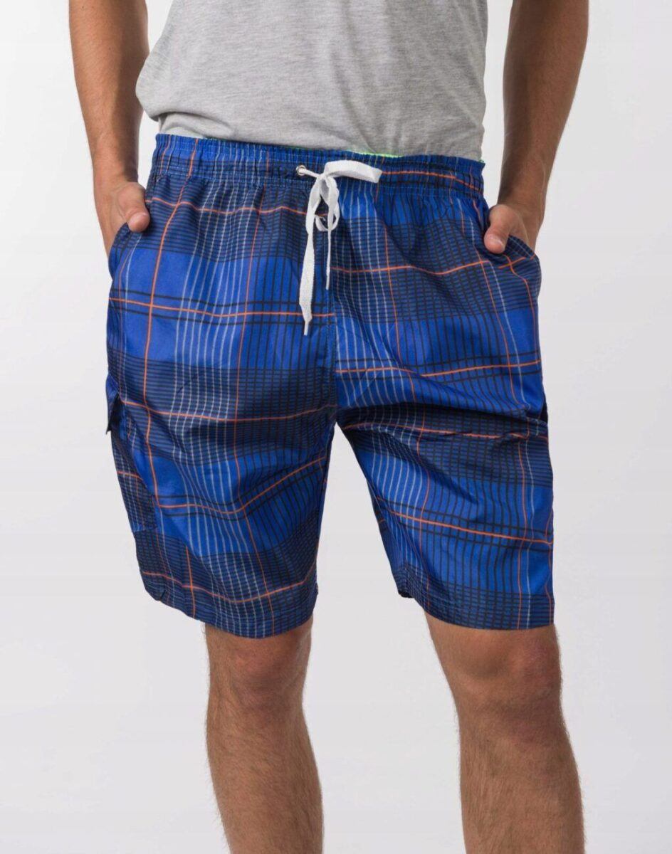 W tym sezonie trwa moda na kraciaste spodenki kąpielowe typu bermudy. Wyjątkowo męskie, lekkie jak piórko, spodenki kąpielowe model 297 idealne na ciepłe i gorące letnie dni. Genialne jako sportowe spodenki kąpielowe będą też pasować do wakacyjnych stylizacji z T-shirtem albo przewiewnym tank topem lub koszulką polo. Są o wiele bardziej wygodne od klasycznych kąpielówek, ponieważ są luźniejsze, nie opinają ciała i nadają dobre proporcje męskiej sylwetce.