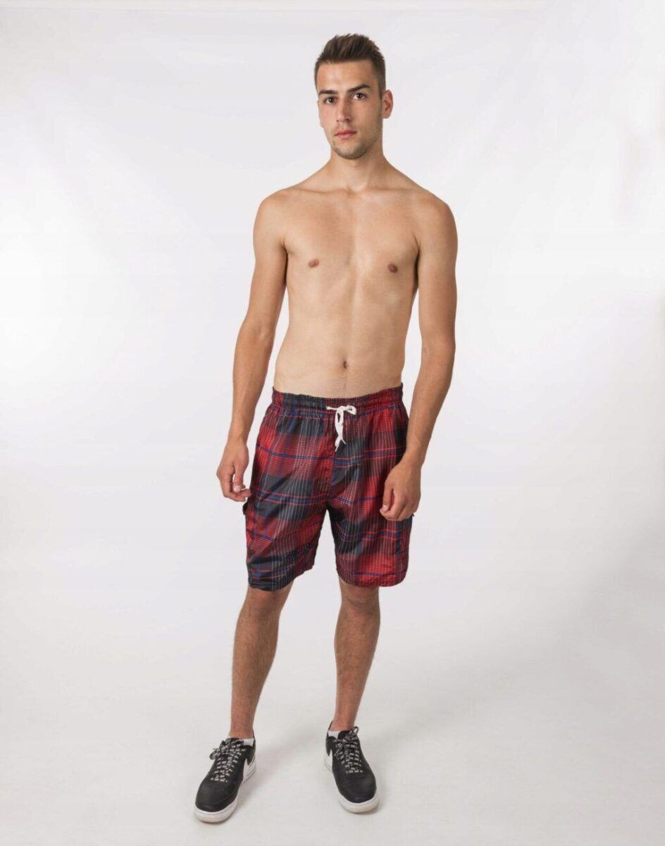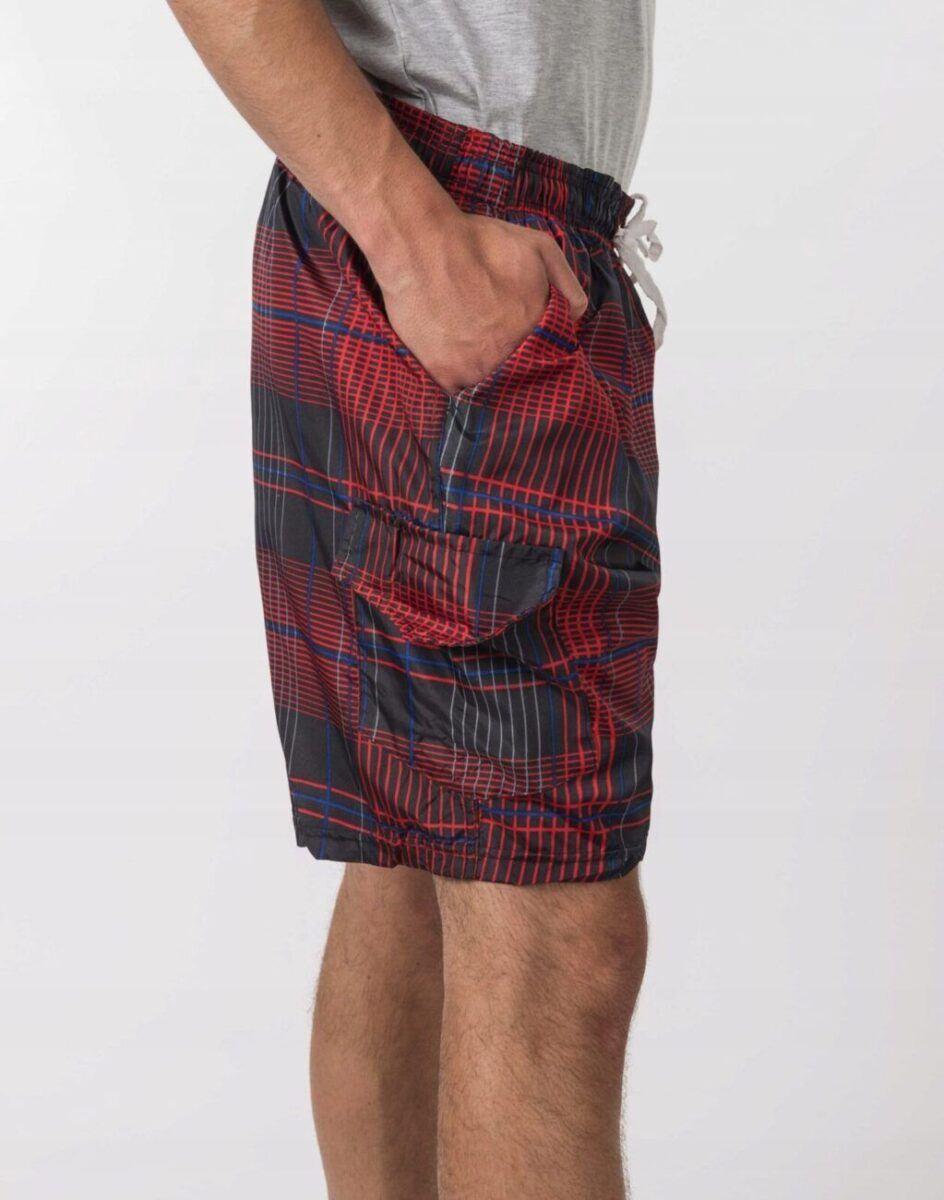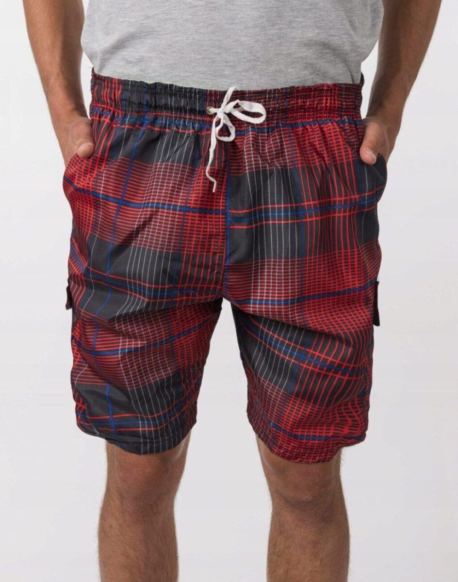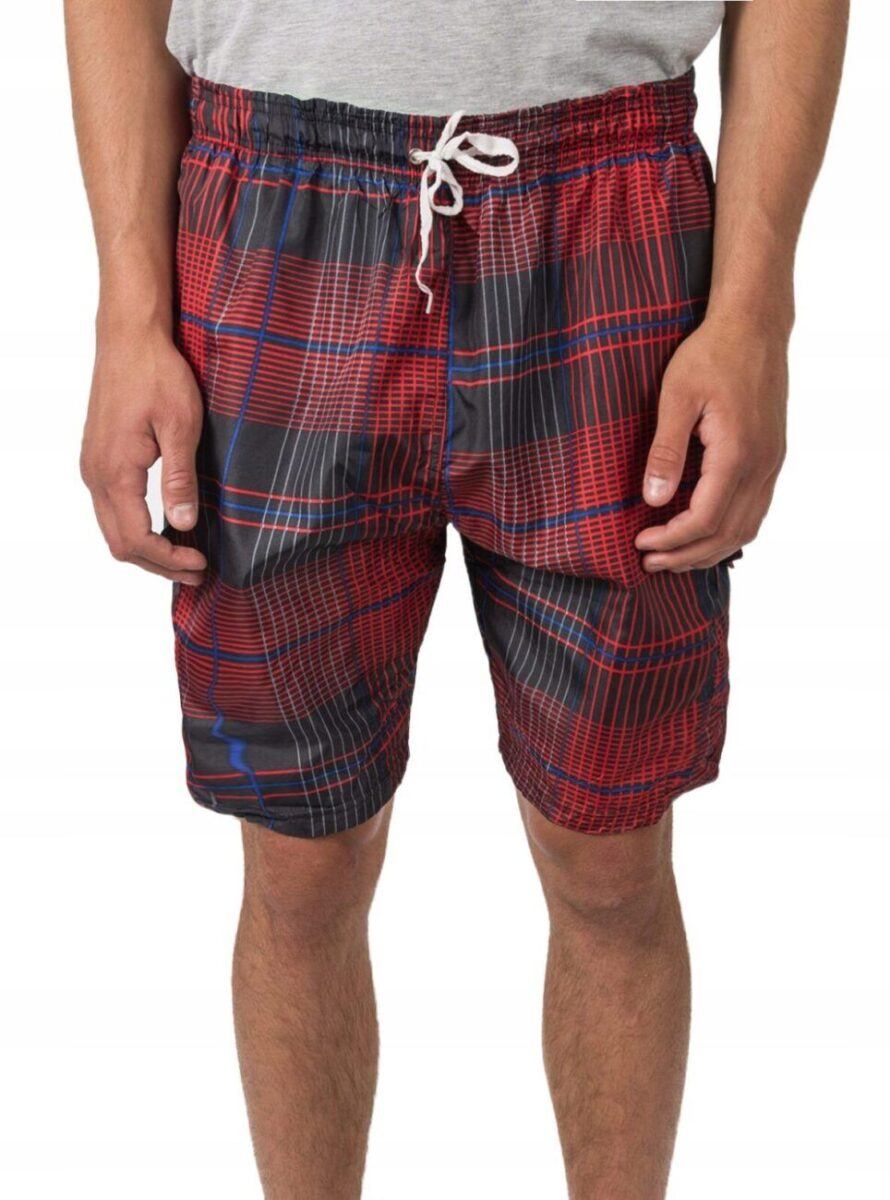 W tym sezonie trwa moda na kraciaste spodenki kąpielowe typu bermudy. Wyjątkowo męskie, lekkie jak piórko, spodenki kąpielowe model 297 idealne na ciepłe i gorące letnie dni. Genialne jako sportowe spodenki kąpielowe będą też pasować do wakacyjnych stylizacji z T-shirtem albo przewiewnym tank topem lub koszulką polo. Są o wiele bardziej wygodne od klasycznych kąpielówek, ponieważ są luźniejsze, nie opinają ciała i nadają dobre proporcje męskiej sylwetce.
