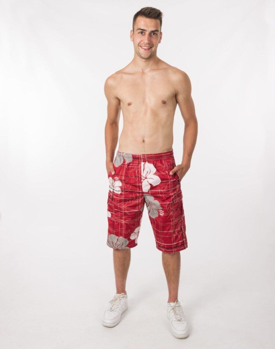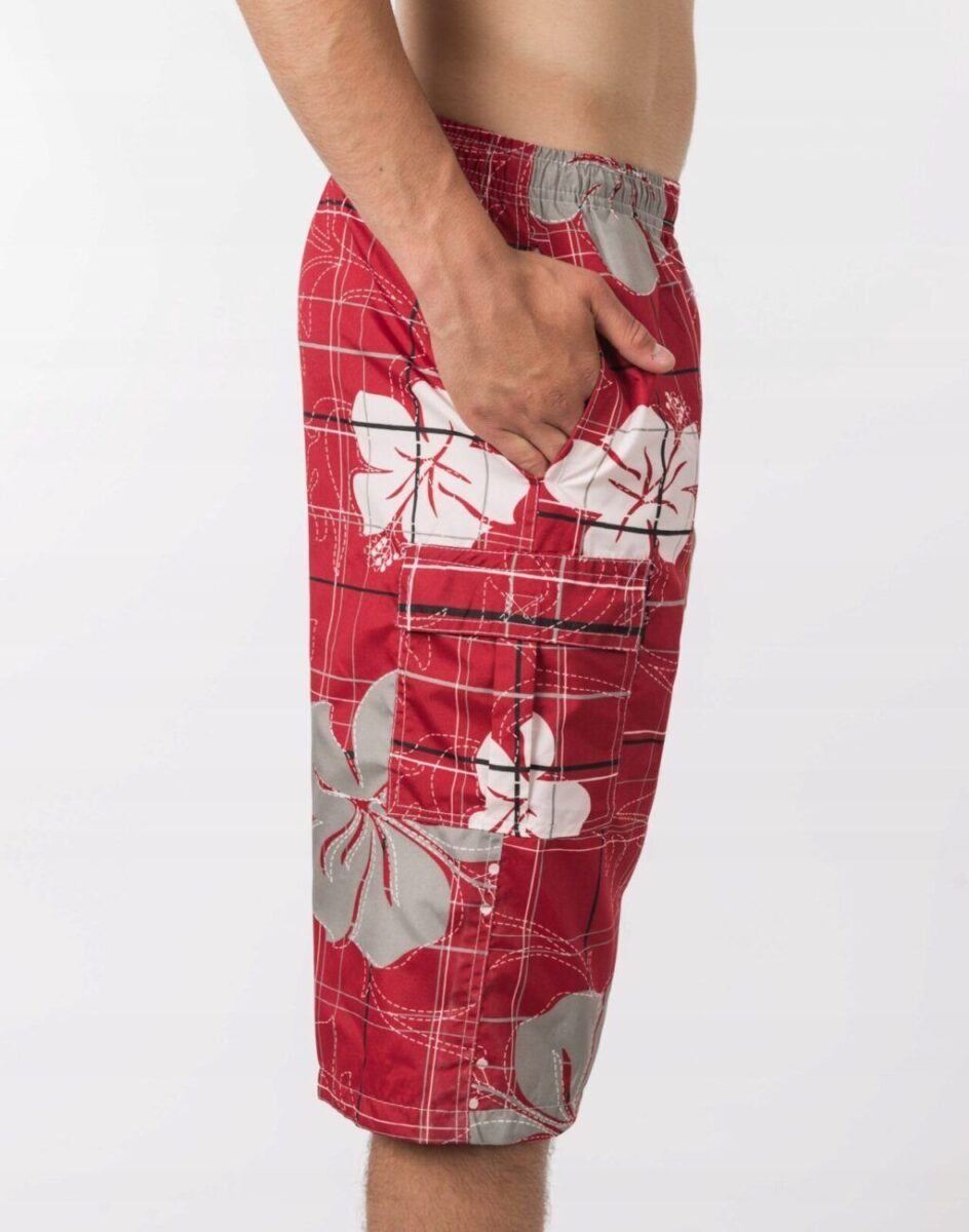 Wyjątkowo męskie, lekkie jak piórko, spodenki kąpielowe typu boardshorty, sięgające tuż za kolano idealne na ciepłe i gorące letnie dni. Genialne jako sportowe spodenki kąpielowe będą też pasować do wakacyjnych stylizacji z T-shirtem albo przewiewnym tank topem lub koszulką polo. Są o wiele bardziej wygodne od klasycznych kąpielówek, ponieważ luźne nogawki dają poczucie komfortu i wygody, nie opinają ciała i nadają dobre proporcje męskiej sylwetce.