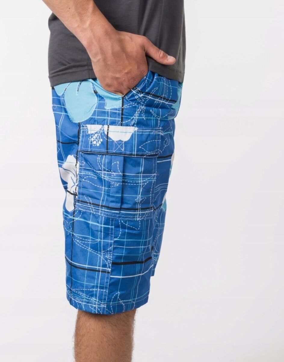 Spodenki mają dwie kieszenie wpuszczane na dłonie, oraz dwie kieszenie na udach kryte patką zapinaną na rzep. Dopasowanie w pasie zapewnia szeroki elastyczny pas ściągający z taśmą regulacyjną do zawiązywania. Wewnętrzne slipy z siateczki. Idealne do użytku na co dzień, uprawiania sportów wodnych i rekreacji. Doskonale się noszą, są wygodne i szybkoschnące świetne do pływania dlatego można wracać w nich do domu nawet krótko po wyjściu z wody. Niezbędne podczas wyjazdów na wakacje w których zawsze będziesz świetnie wyglądał i czuł się swobodnie na plaży.