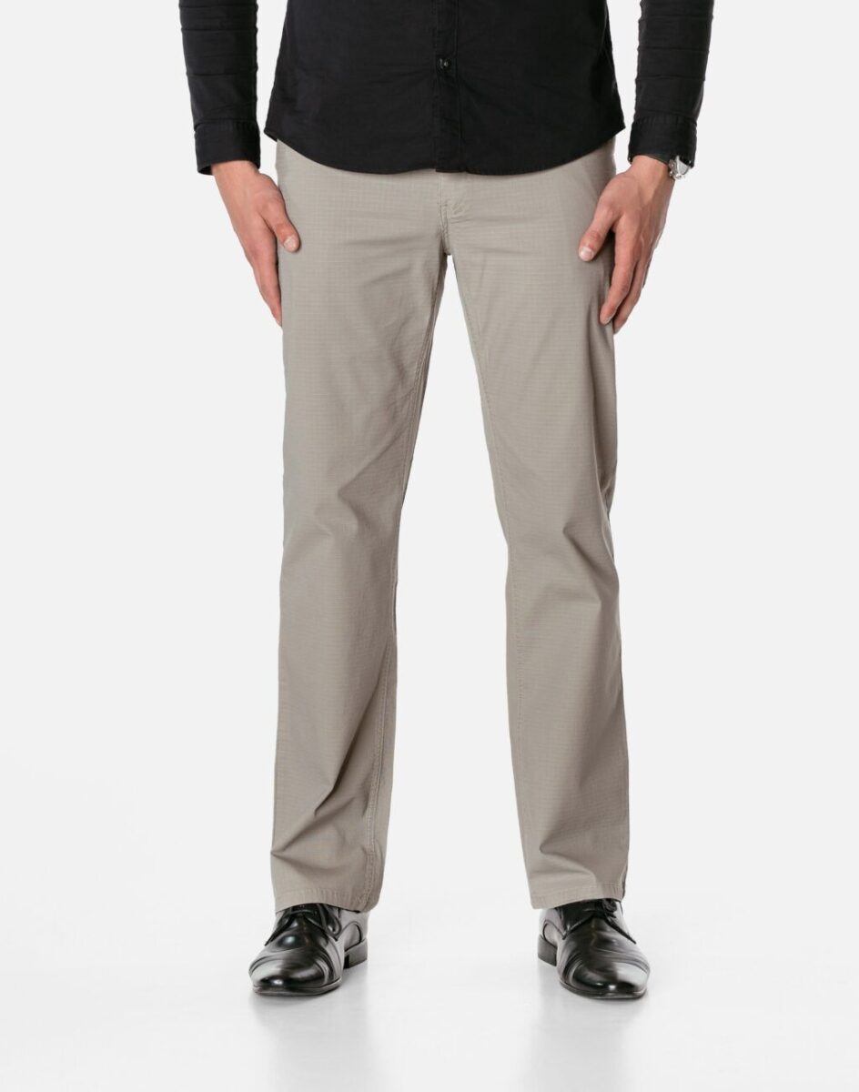 Cienkie bawełniane spodnie męskie o klasycznym kroju, to wygodne rozwiązanie na ciepłe i gorące dni wiosny i lata oraz niezbędny element wakacyjnej garderoby oraz udanych letnich stylizacji. Przewiewne i wygodne, idealne na co dzień jako element casualowego stroju, czyniąc go lekkim i dostosowanym do wysokich temperatur. Zapinane na kryty zamek błyskawiczny i metalowy guzik sygnowany logiem firmy. Z przodu mają dwie wpuszczane kieszenie na dłonie oraz mniejszą kieszonkę tzw. bilonówkę. Z tyłu dwie naszywane kieszenie jak w typowych spodniach jeansowych. W pasie szlufki umożliwiające stylizacje z paskiem. Najbardziej podatne na uszkodzenia miejsca wzmocnione są dodatkowymi przeszyciami oraz nitami.