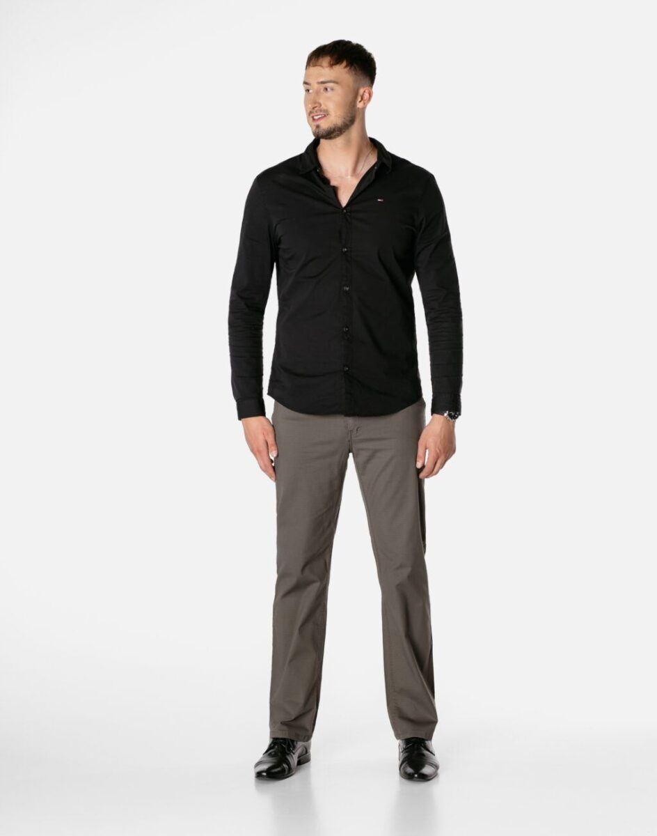 Uniwersalny zawsze modny fason z klasyczną prostą nogawką i standardowym stanem, o bardzo dobrym i sprawdzonym przez wielu klientów kroju. Wykonane z wysokiej jakości cienkiej i oddychającej tkaniny 100% bawełnianej o jednolitym wybarwieniu. Odpowiedni na wysokie temperatury krój spodni oraz delikatnie elastyczna tkanina pozwalają na pełną swobodę ruchów, co daje wygodę przy siadaniu i zapewnia ogromny komfort noszenia. Idealnie nadają się na spacer w ciepłe dni i wieczory, weekendowy wypad z przyjaciółmi, doskonale spełniają rolę wakacyjnego stroju wprowadzając nieco swobody a przy tym zadając szyku.