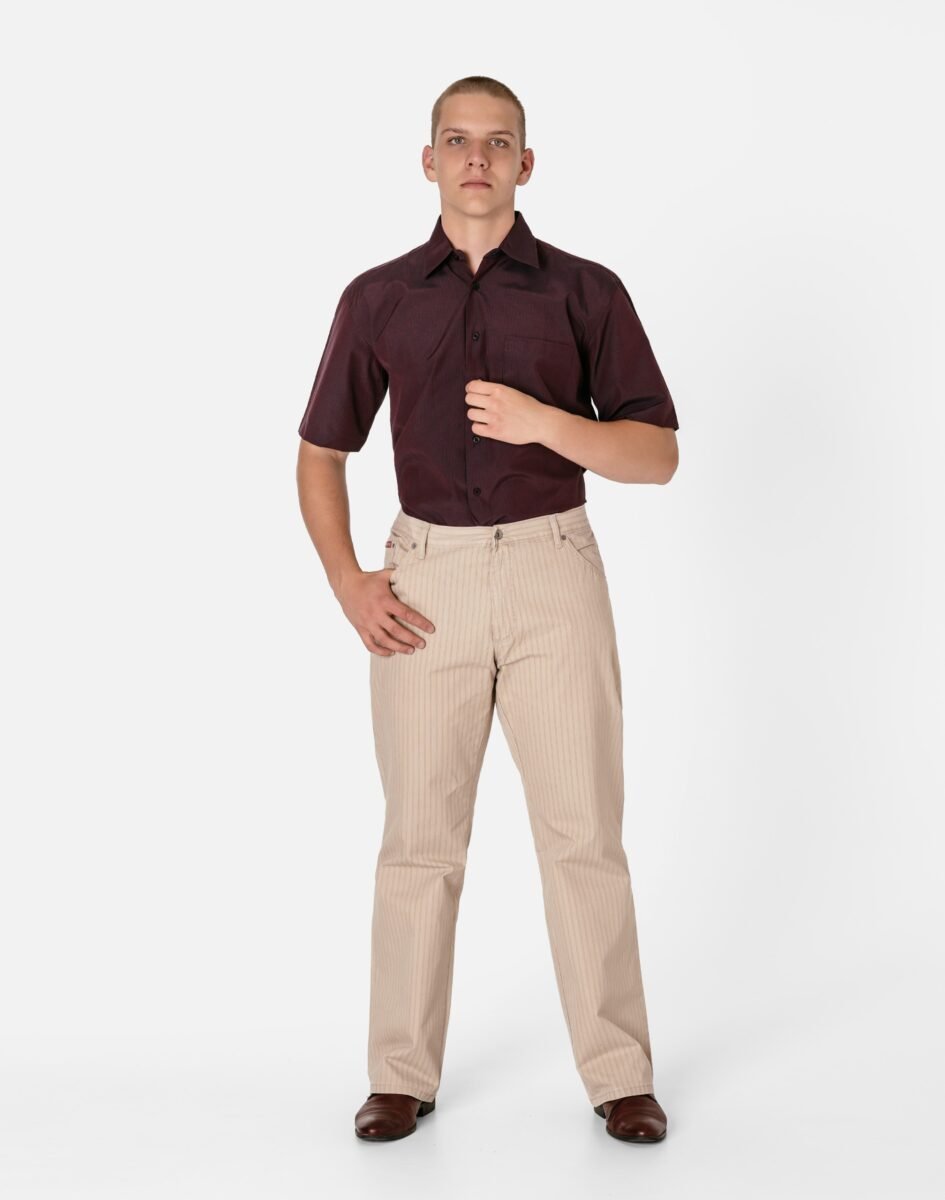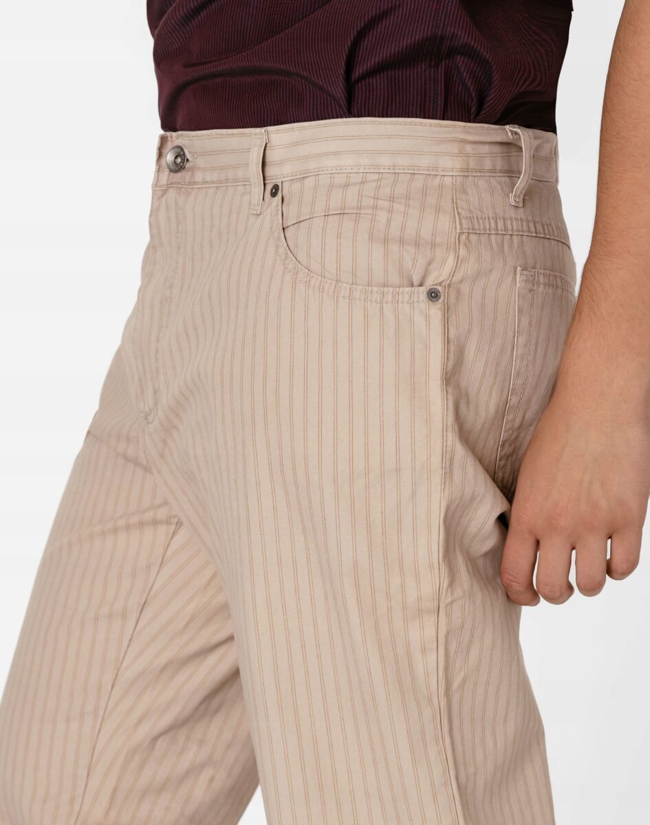 Uniwersalny zawsze modny fason z klasyczną prostą nogawką i standardowym stanem, o bardzo dobrym i sprawdzonym przez wielu klientów kroju. Wykonane z wysokiej jakościcienkiej i oddychającej tkaniny bawełnianej o letnim wybarwieniu. Odpowiedni na wysokie temperatury krój spodni pozwala na pełną swobodę ruchów, co daje wygodę przy siadaniu i zapewnia ogromny komfort noszenia. Idealnie nadają się na spacer w ciepłe dni i wieczory, weekendowy wypad z przyjaciółmi, doskonale spełniają rolę wakacyjnego stroju wprowadzając nieco swobody a przy tym zadając szyku.