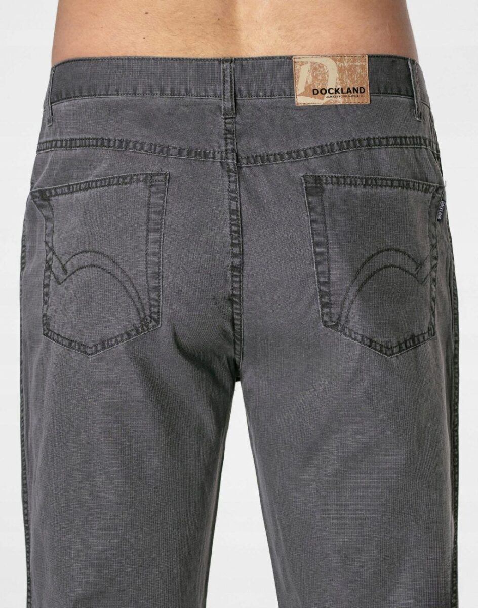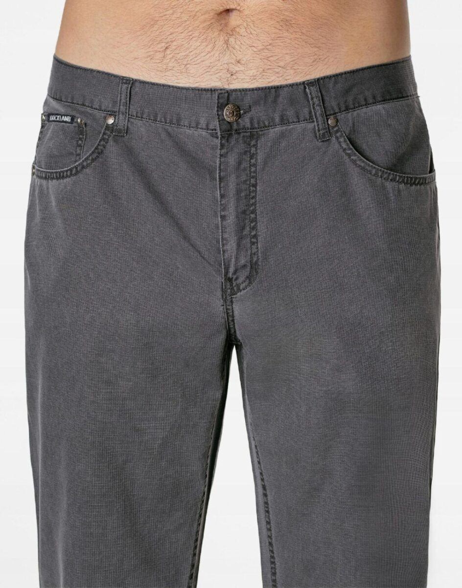 Cienkie bawełniane spodnie męskie o klasycznym kroju, to wygodne rozwiązanie na ciepłe i gorące dni wiosny i lata oraz niezbędny element wakacyjnej garderoby oraz udanych letnich stylizacji. Przewiewne i wygodne, idealne na co dzień jako element casualowego stroju, czyniąc go lekkim i dostosowanym do wysokich temperatur. Zapinane na kryty zamek błyskawiczny i metalowy guzik sygnowany logiem firmy. Z przodu mają dwie wpuszczane kieszenie na dłonie oraz mniejszą kieszonkę tzw. bilonówkę. Z tyłu dwie naszywane kieszenie jak w typowych spodniach jeansowych. W pasie szlufki umożliwiające stylizacje z paskiem. Najbardziej podatne na uszkodzenia miejsca wzmocnione są dodatkowymi przeszyciami oraz nitami.