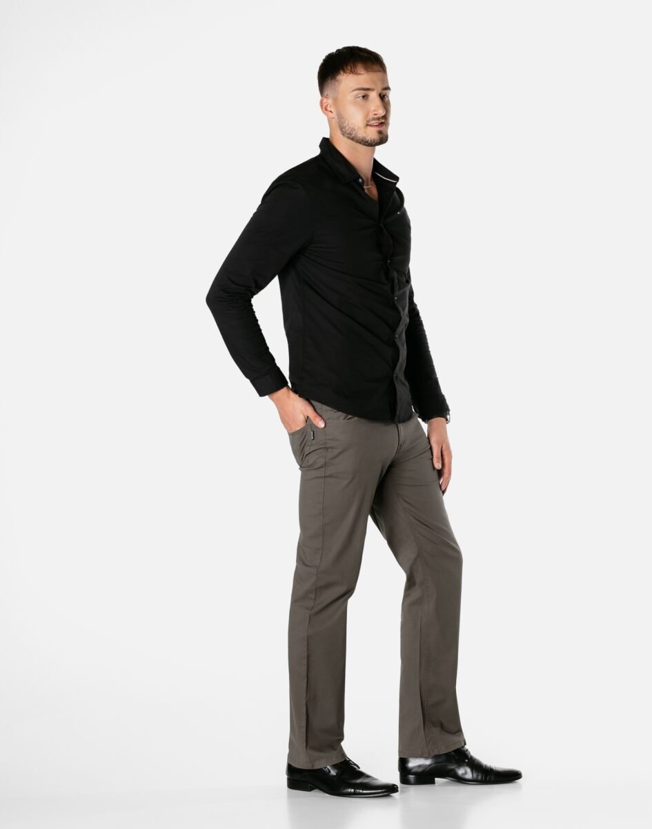 Uniwersalny zawsze modny fason z klasyczną prostą nogawką i standardowym stanem, o bardzo dobrym i sprawdzonym przez wielu klientów kroju. Wykonane z wysokiej jakości cienkiej i oddychającej tkaniny 100% bawełnianej o jednolitym wybarwieniu. Odpowiedni na wysokie temperatury krój spodni oraz delikatnie elastyczna tkanina pozwalają na pełną swobodę ruchów, co daje wygodę przy siadaniu i zapewnia ogromny komfort noszenia. Idealnie nadają się na spacer w ciepłe dni i wieczory, weekendowy wypad z przyjaciółmi, doskonale spełniają rolę wakacyjnego stroju wprowadzając nieco swobody a przy tym zadając szyku.